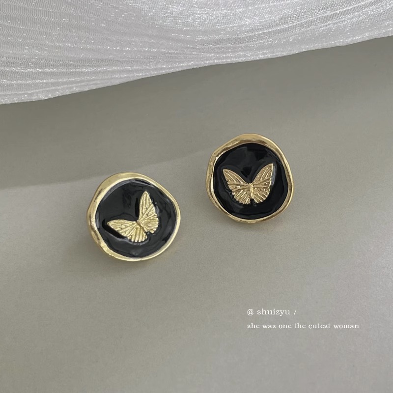 7# silver needle-black dripping butterfly studs