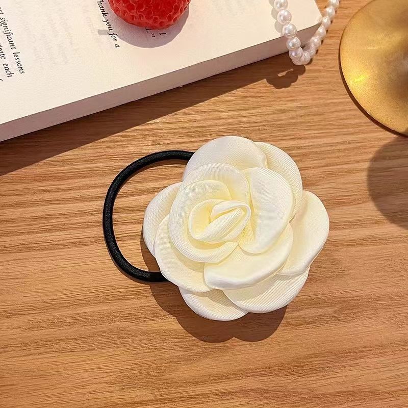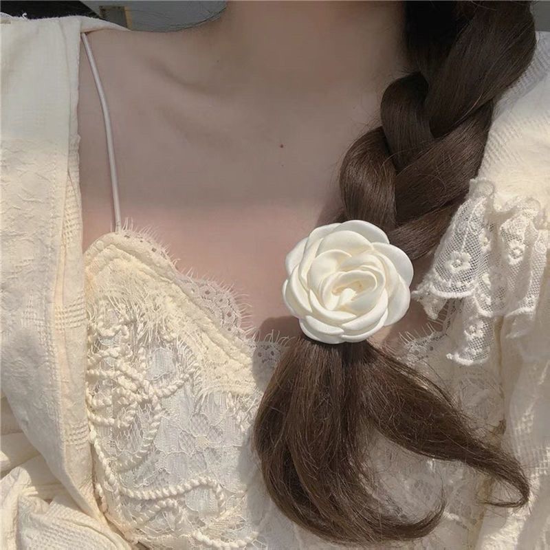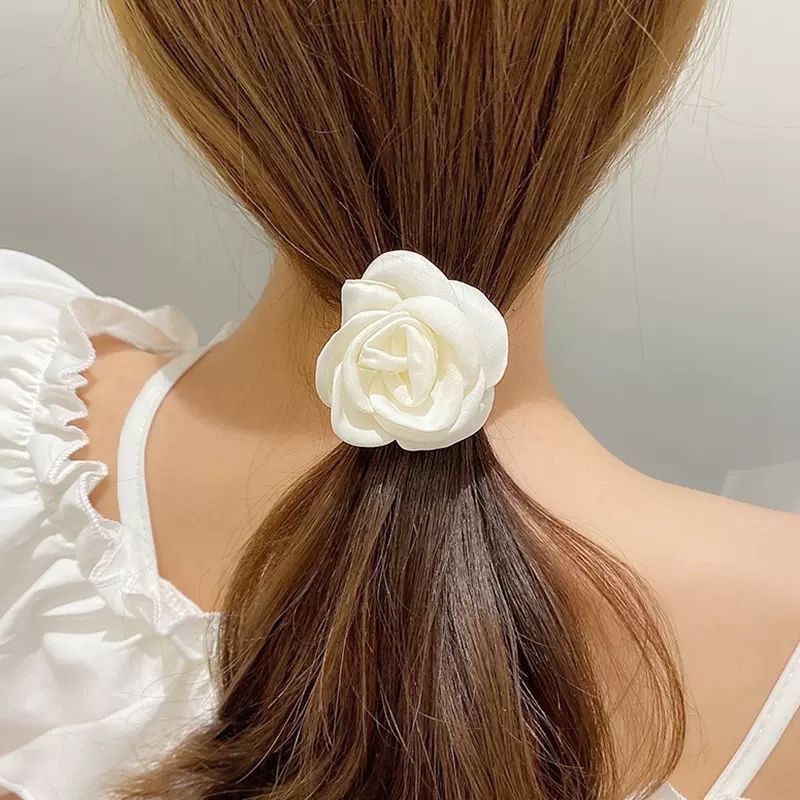 milky white camellia hair rope