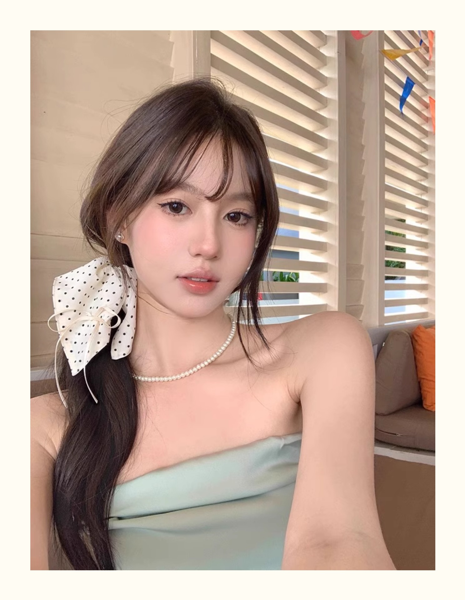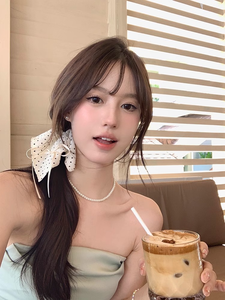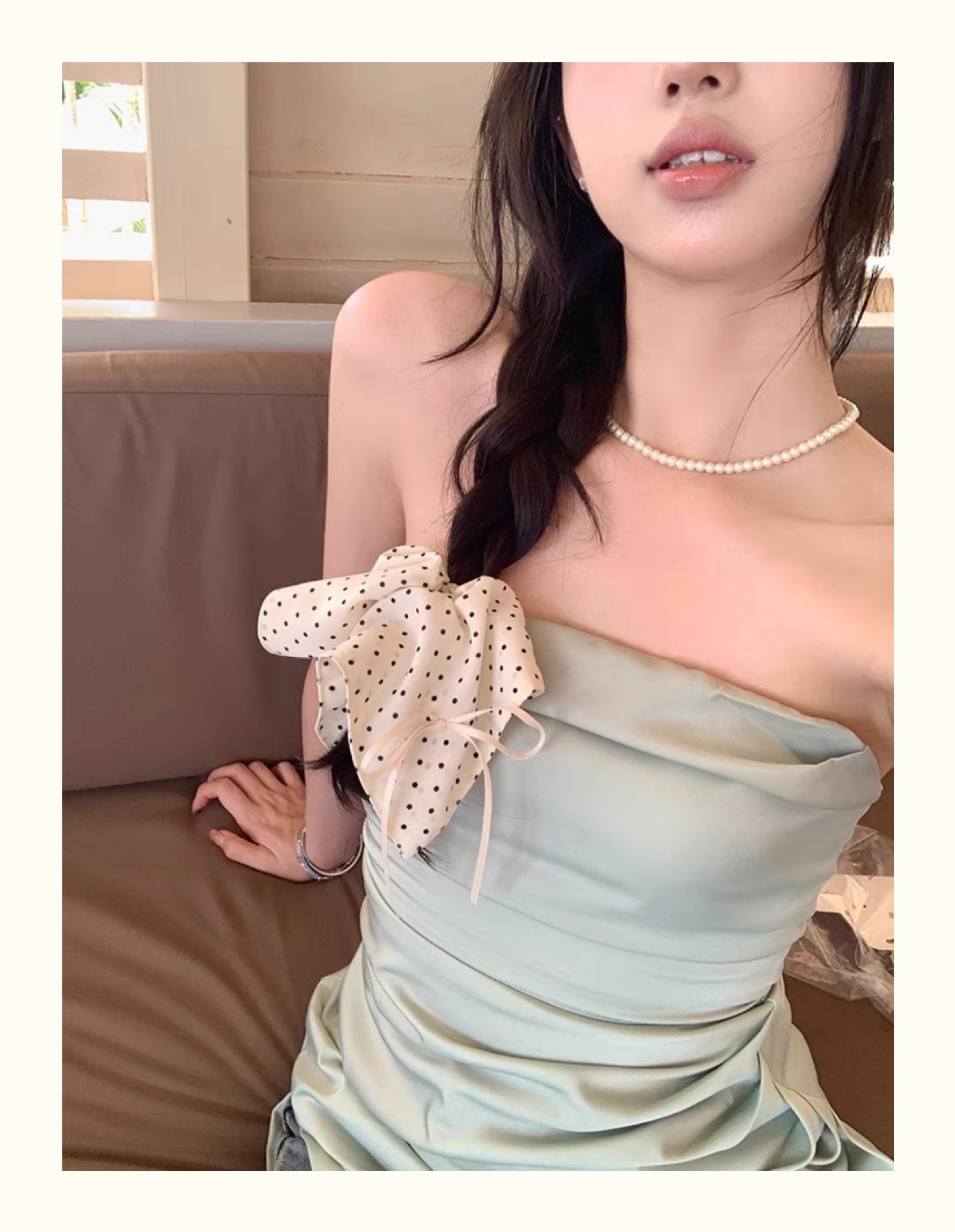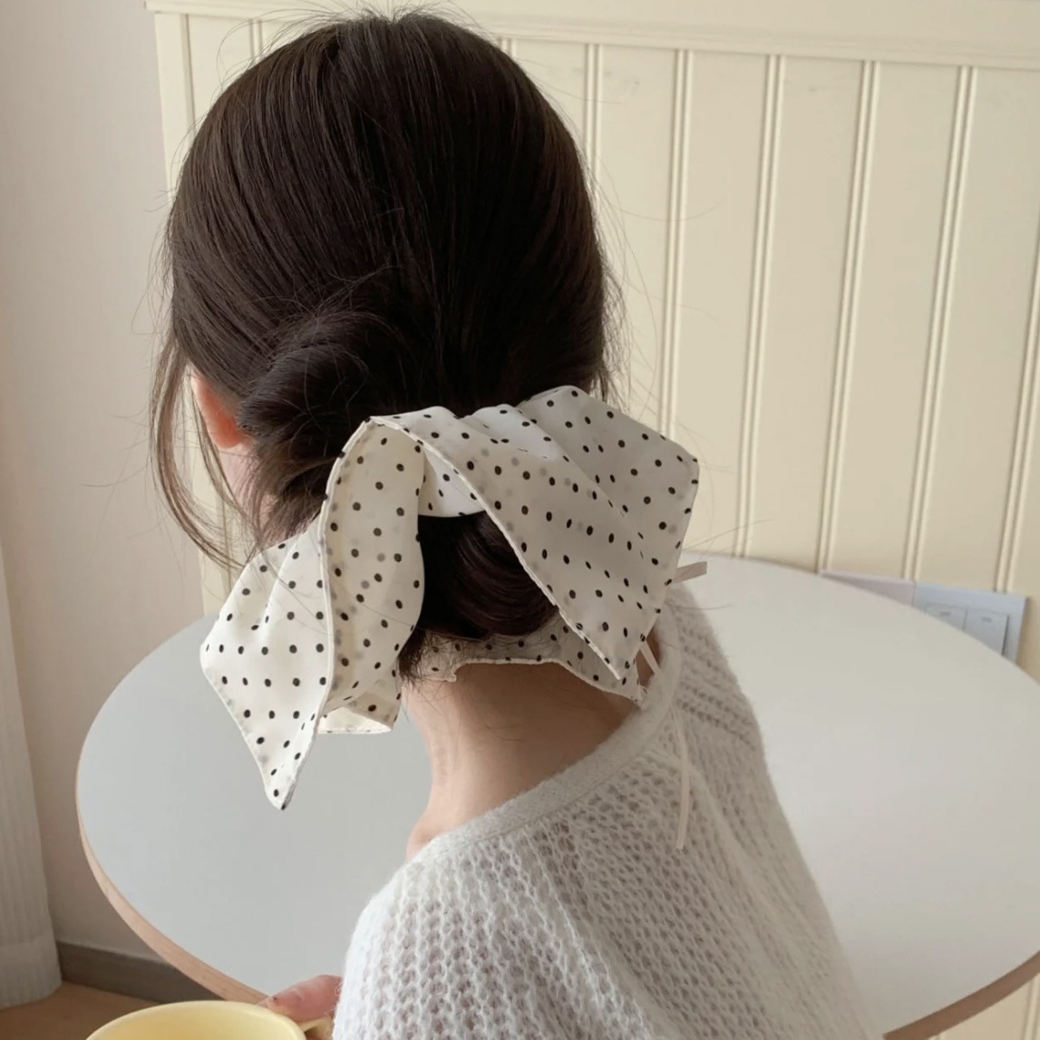 white polka dot square scarf