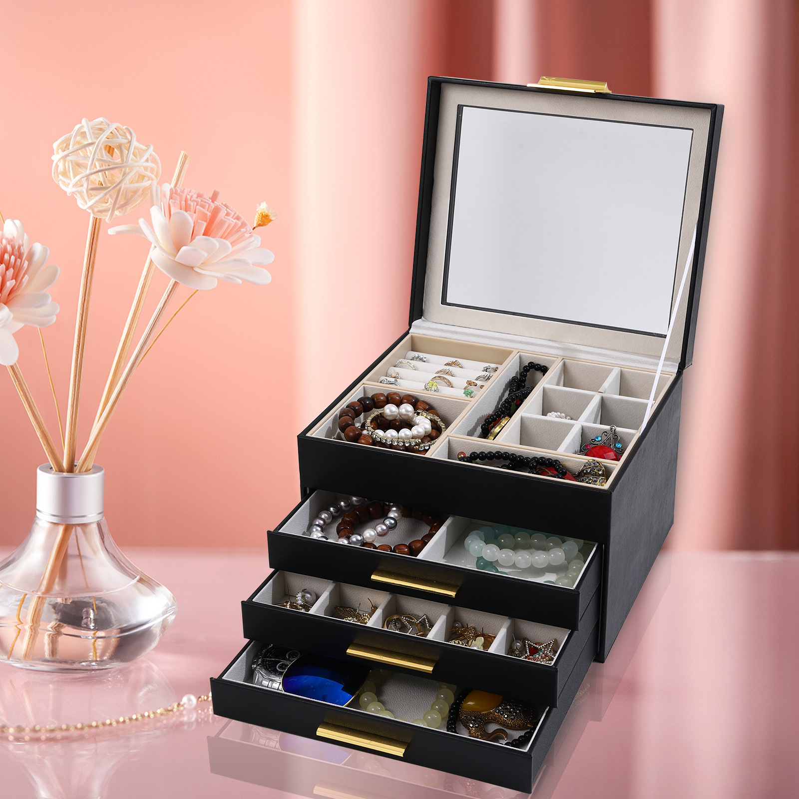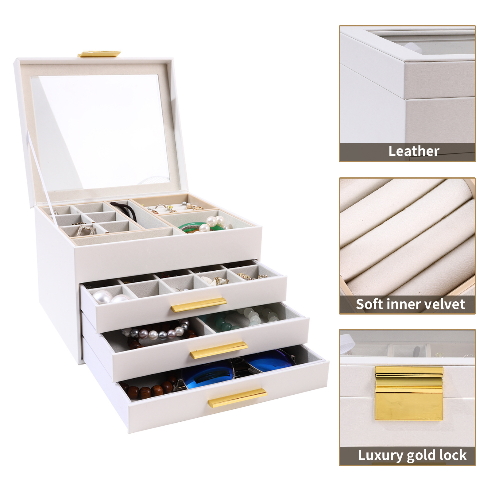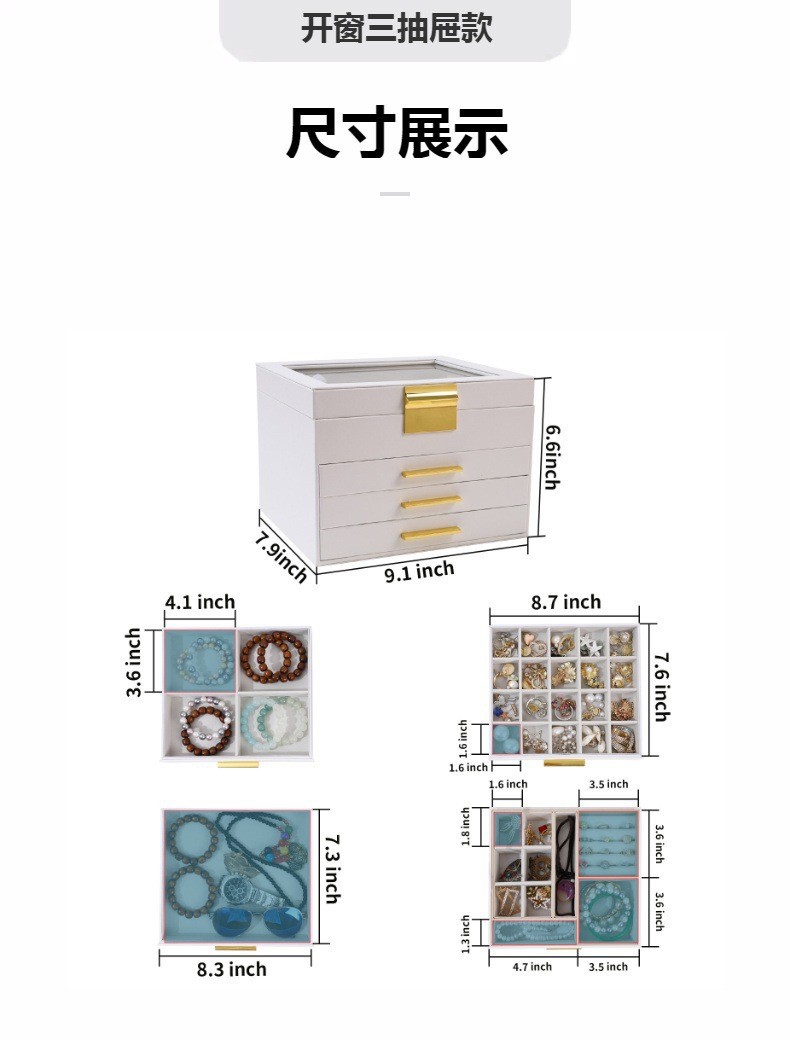 Overseas Hot Open Window Ornament Dustproof Storage Box Foreign Trade Desktop Organize and Storage PU Leather Headdress Watch Box