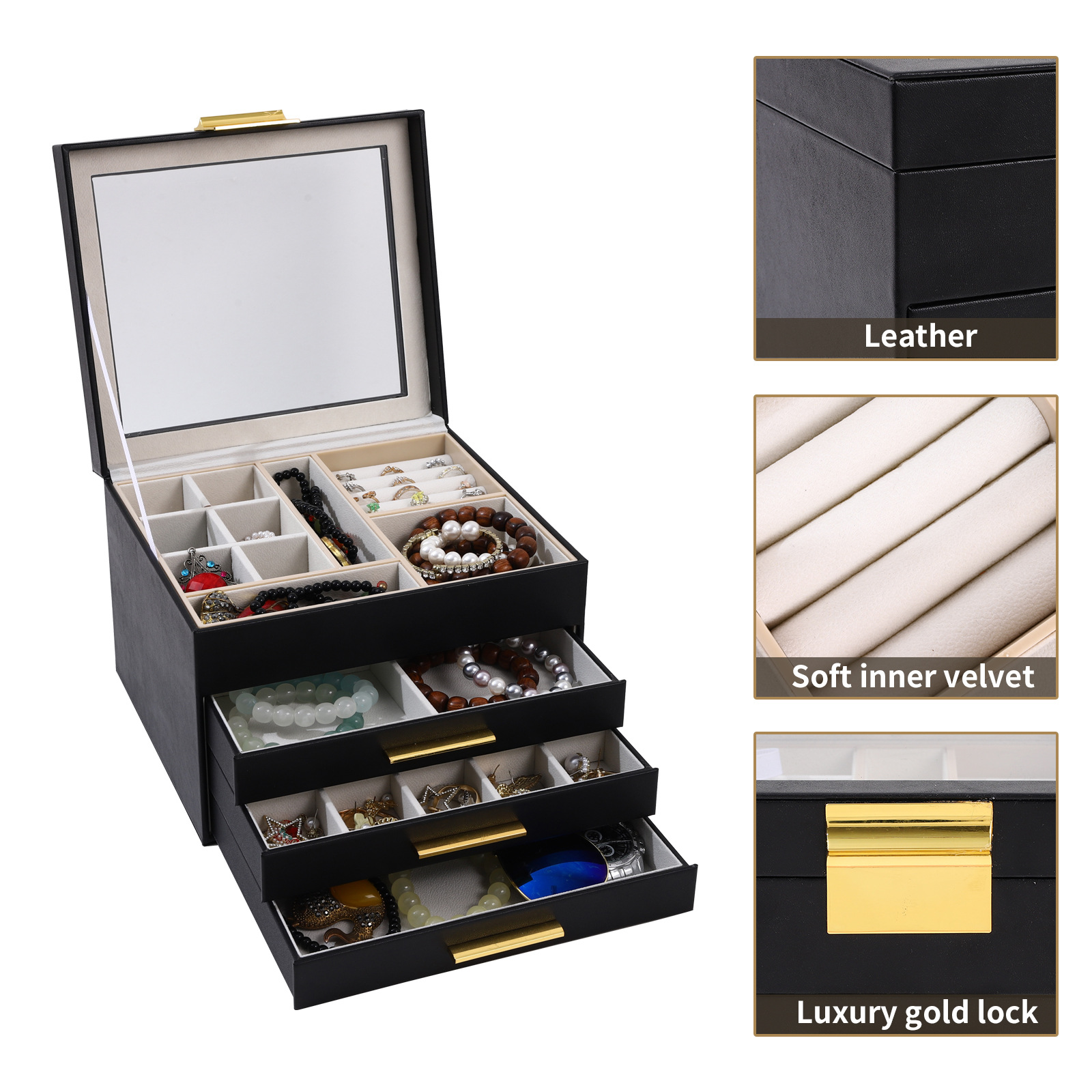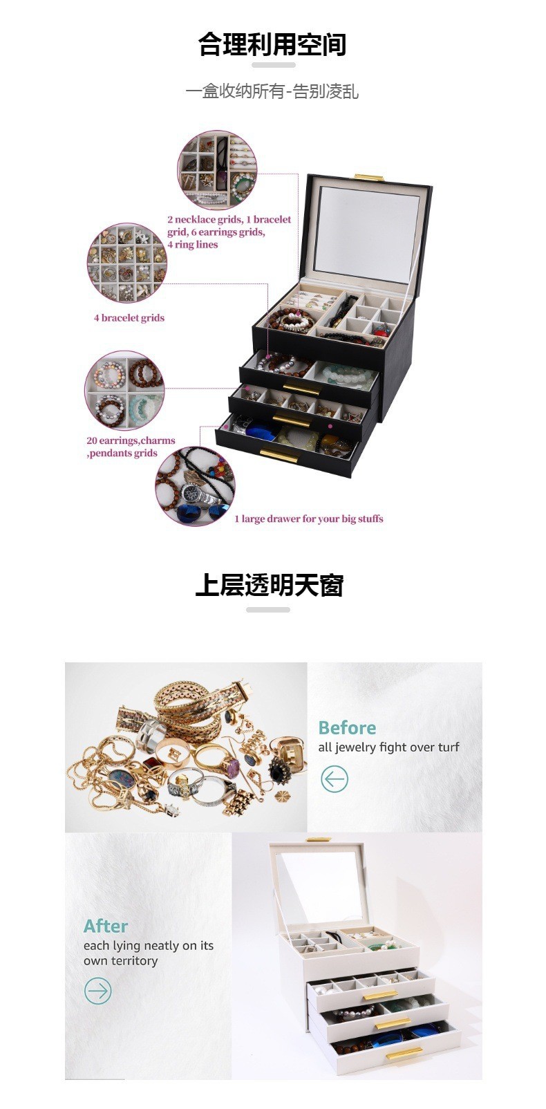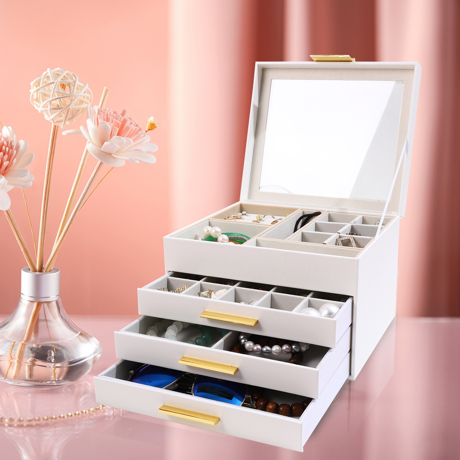 Overseas Hot Open Window Ornament Dustproof Storage Box Foreign Trade Desktop Organize and Storage PU Leather Headdress Watch Box