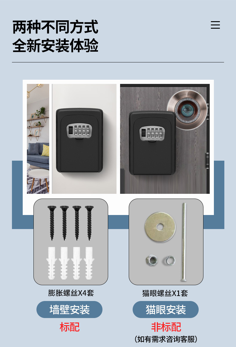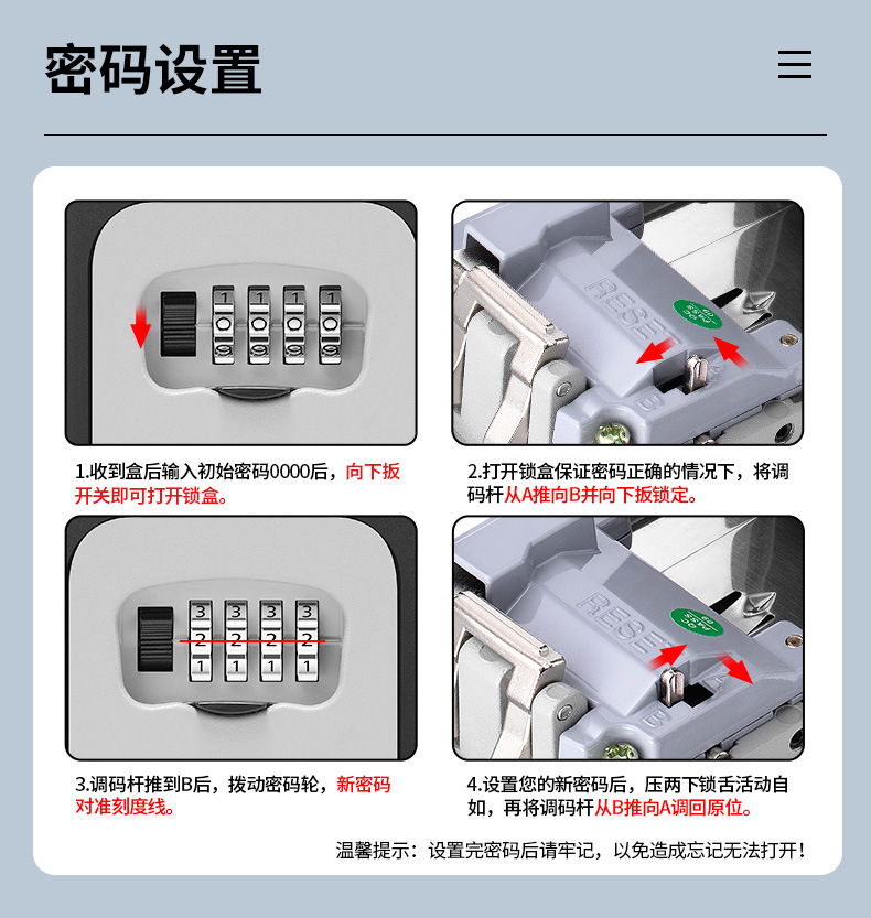 Ch-851 Keys' Box Factory Wholesale Decoration Wall-Mounted Construction Site Home B & B 4-Seat Wall Hanging Password Key Box Keys' Box