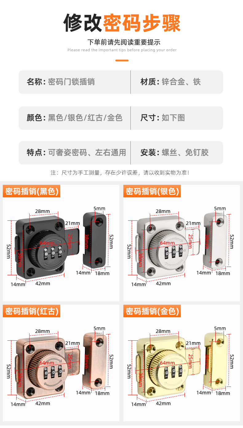 cabinet lock cupboard drawer push-pull double-open lock door lock buckle wardrobe anti-theft password lock punch-free cabinet door lock