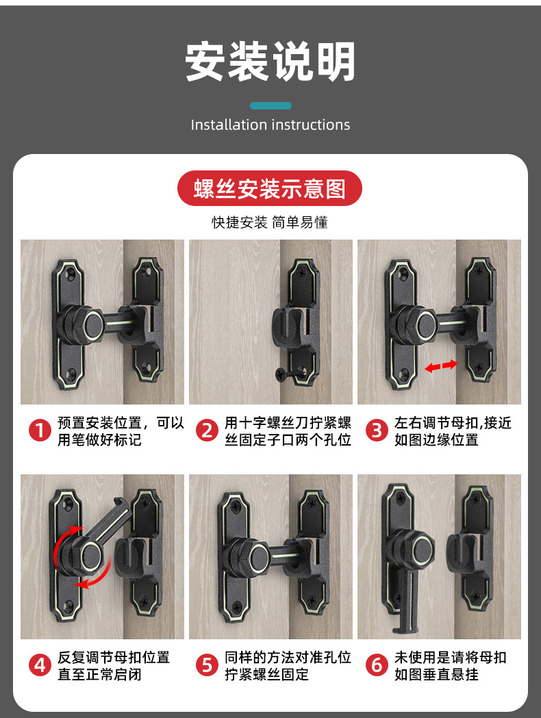 punch-free bolt door bolt lock buckle sliding door lock bolt type simple door latch door buckle barn lock artifact