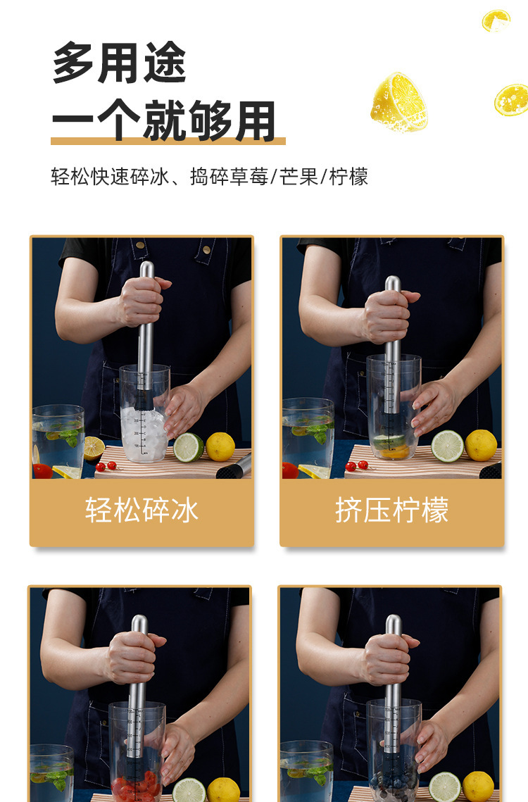 stainless steel ice crushing bar fruit juicing stick lemon juice stick bar wine mixer ice hammer milk tea shop fruit teas mashed stick