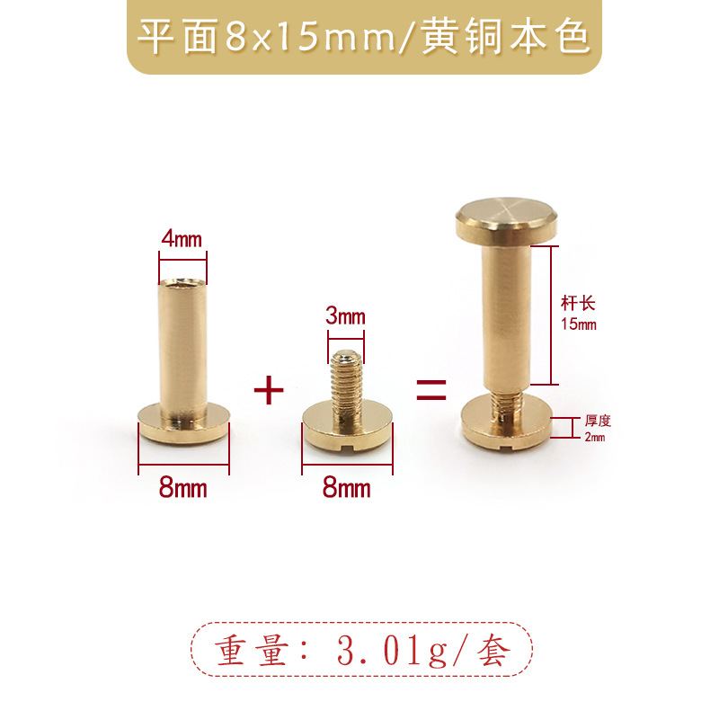 brass natural color 8x15mm with 8*6 one-word screw/flat push pin