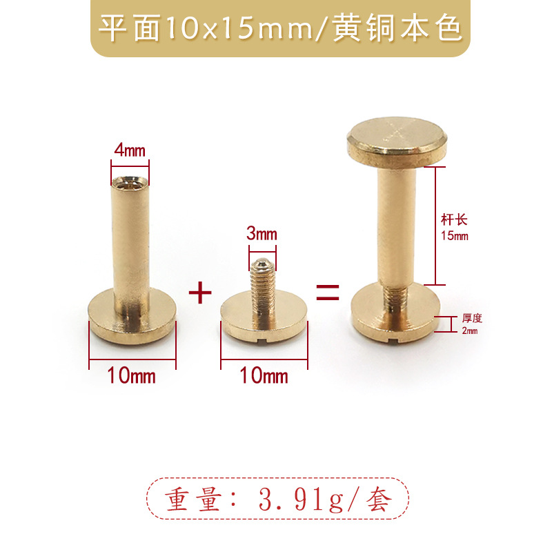 brass natural color 10x15mm with 10*6 one-word screw/flat push pin
