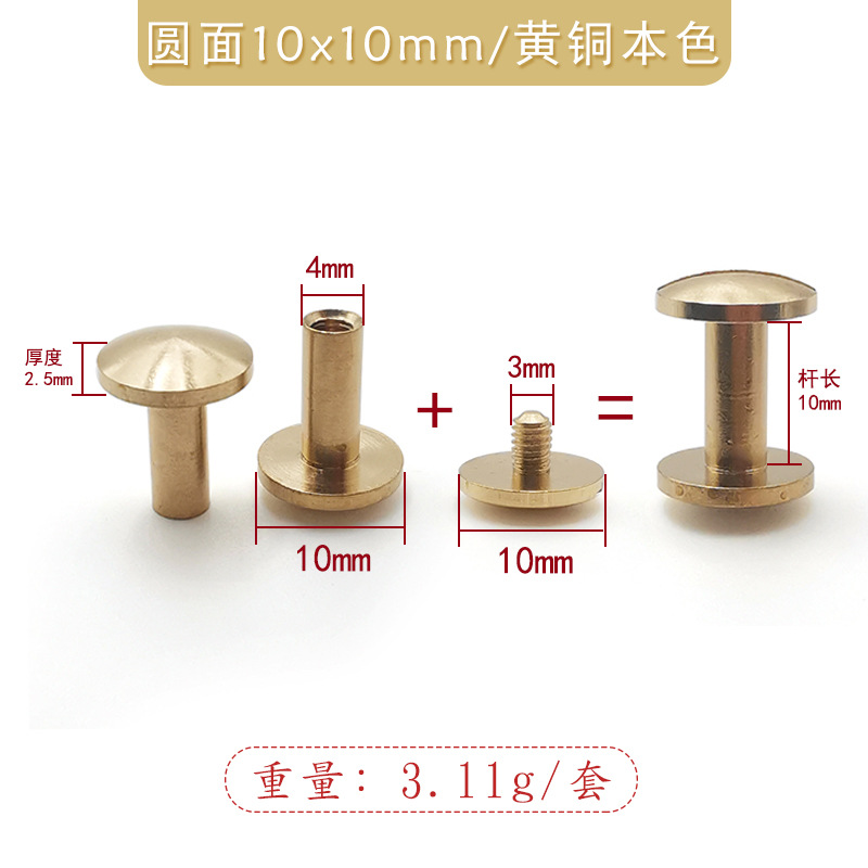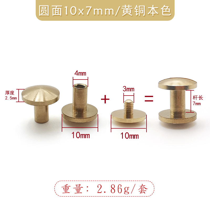 brass natural color-arc surface 10x7mm with 10*6 single-word screws/arc surface push pin
