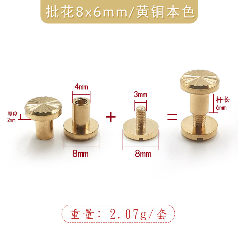 | brass natural color 8x8mm with 8*6 one-word screw/arc surface push pin | CN¥ 0.56 | 99968 set available |