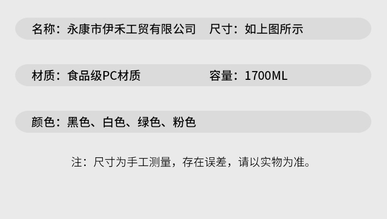 | 1700ml | CN¥ 12.72 | 2452376 piece available |