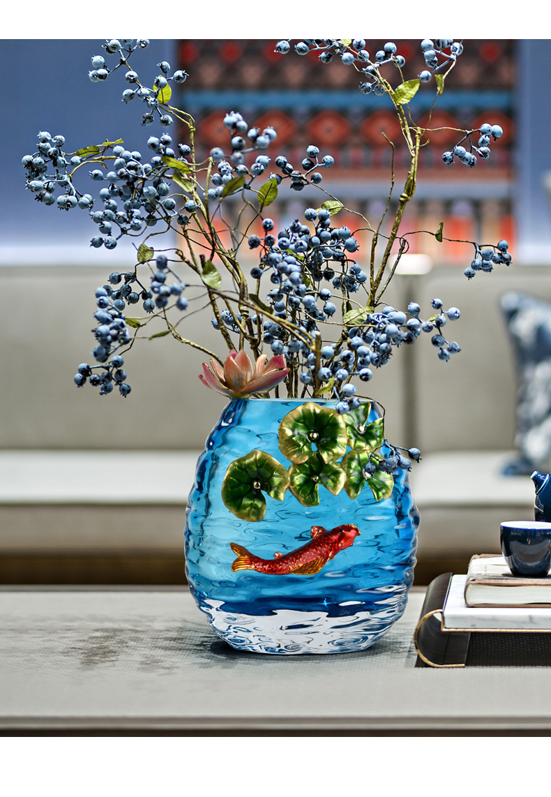 new chinese style glaze enamel blue vase art high sense restaurant entrance cabinet table decorations flower arrangement
