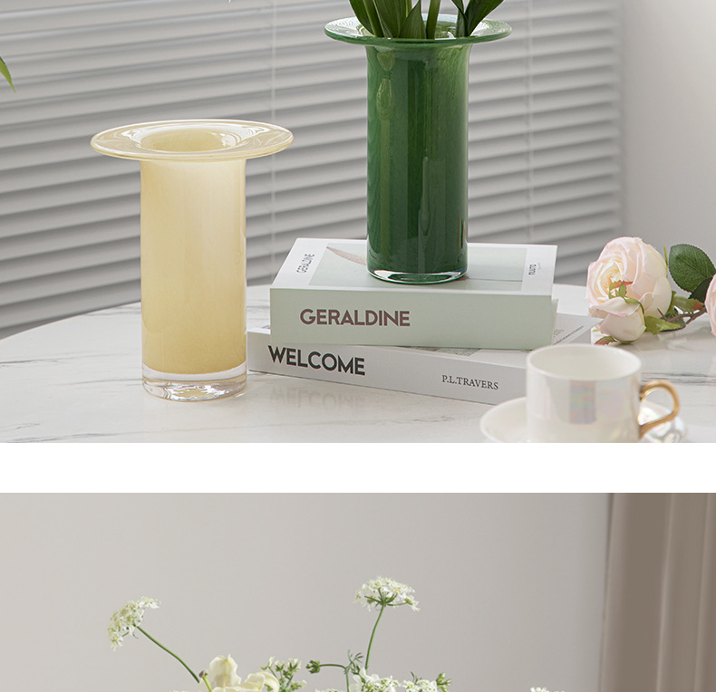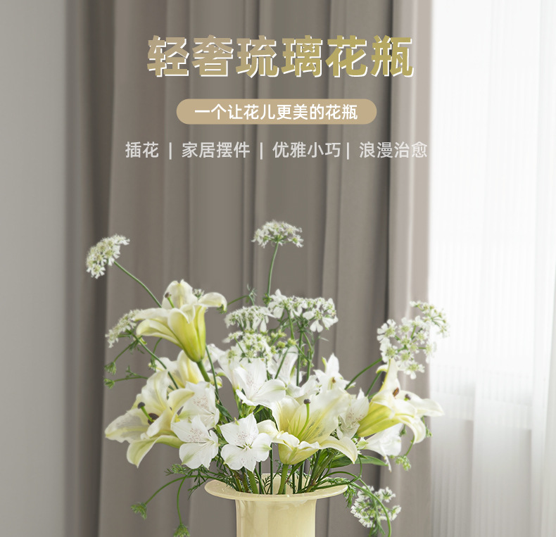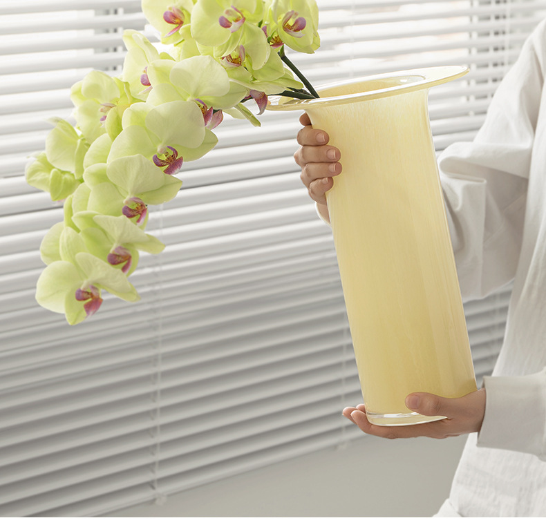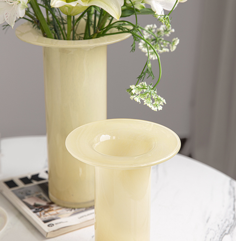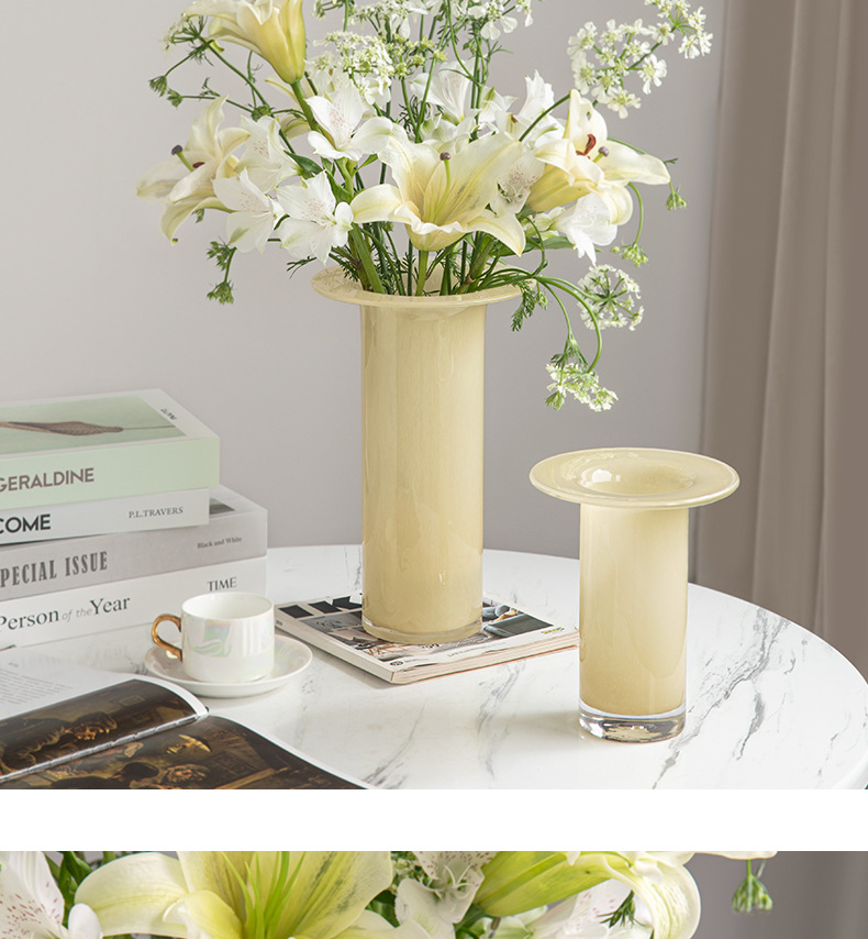 modern simple ins internet celebrity high-grade milk jade flower glass trumpet vase hydroponic flower arrangement living room decorations