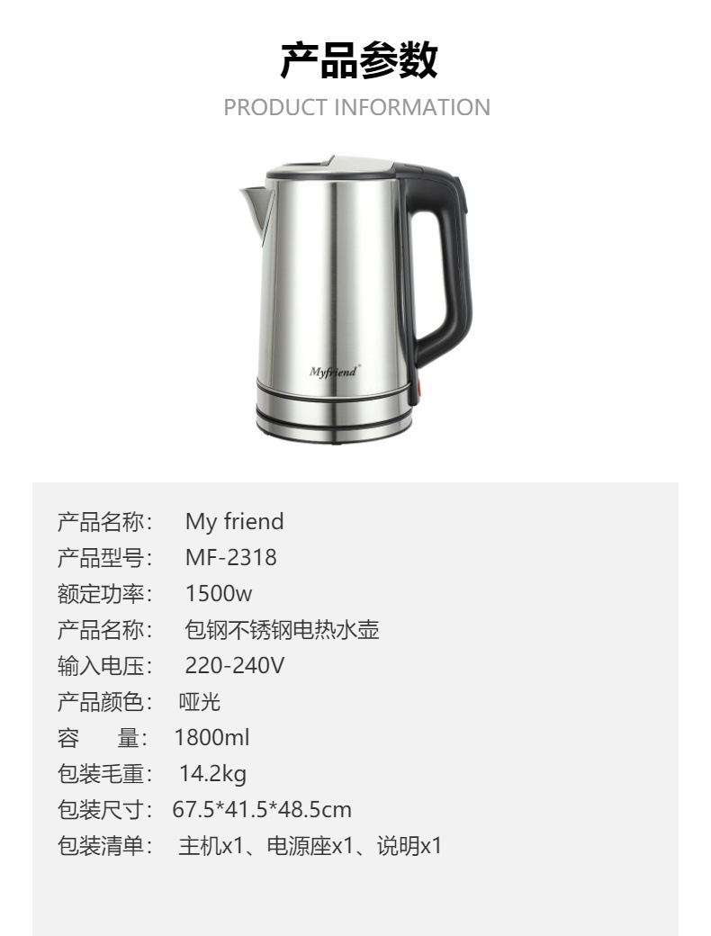 MyFriend - Large Stock - MF-2318 - Large Capacity 2.3l & 1.8l - Stainless Steel Water Bottles with Packed Steel