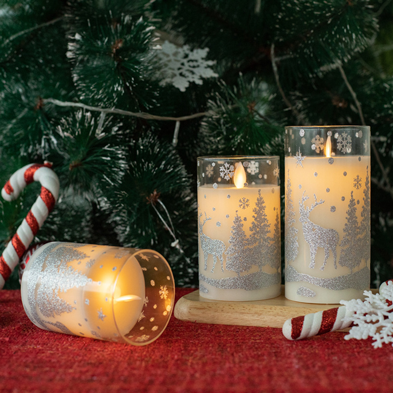 glass paraffin wax christmas candle glass cup pattern candle led electronic candle
