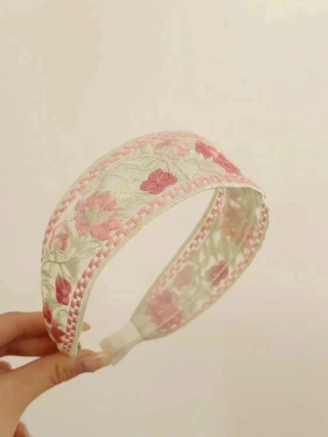 embroidery wide brim hair band ~ pink