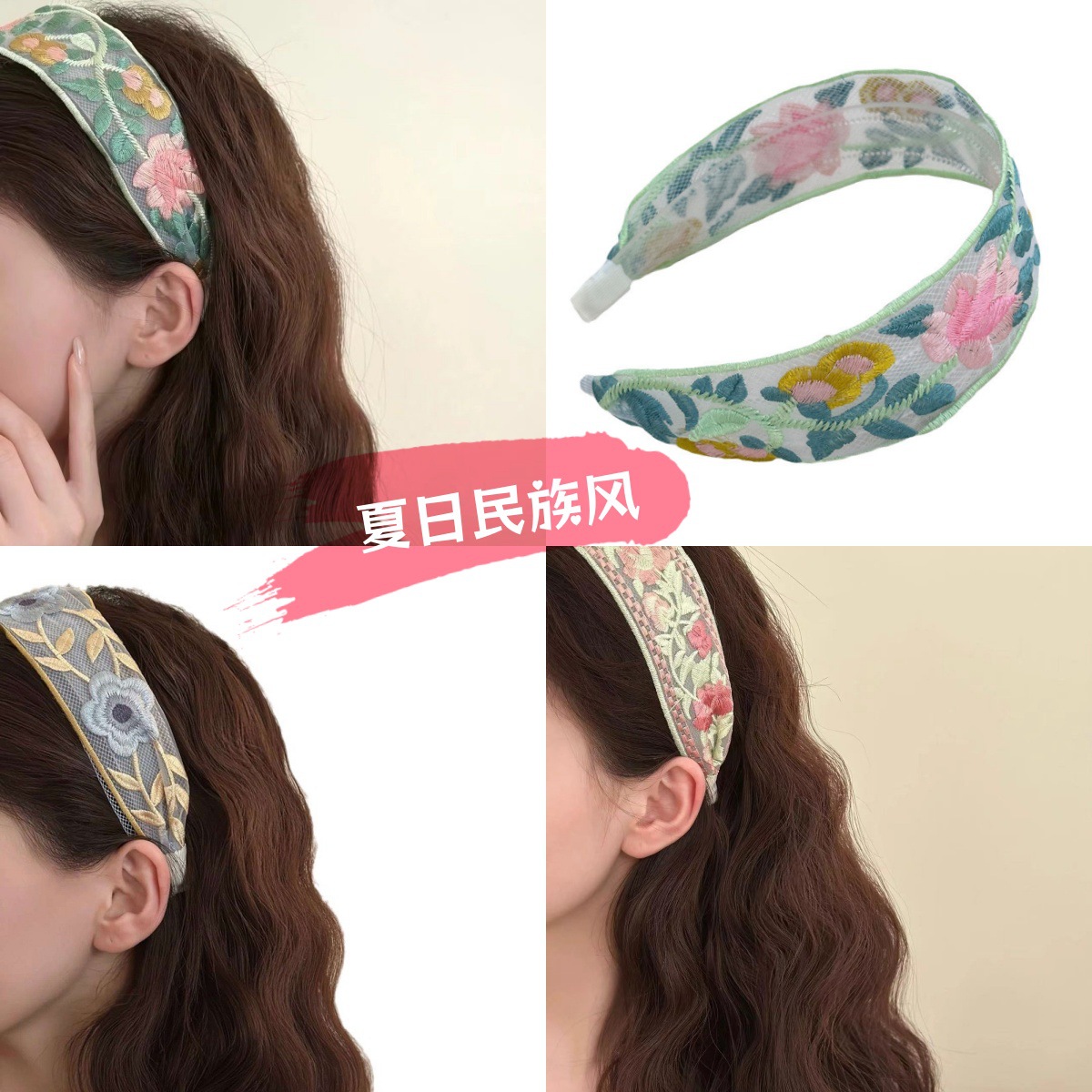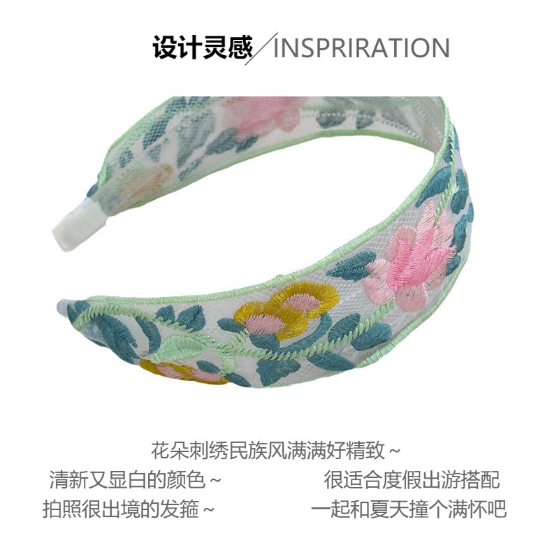 embroidery wide brim hair band ~ green