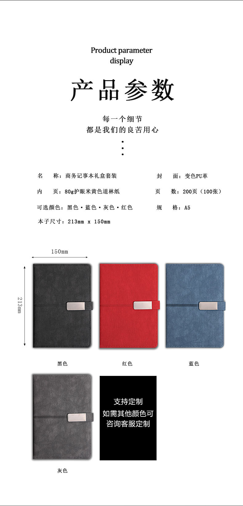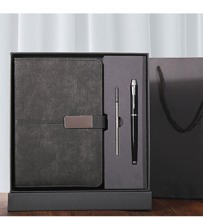 gray gift box + gift bag + pen + notebook + refill