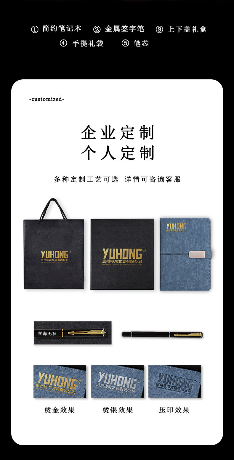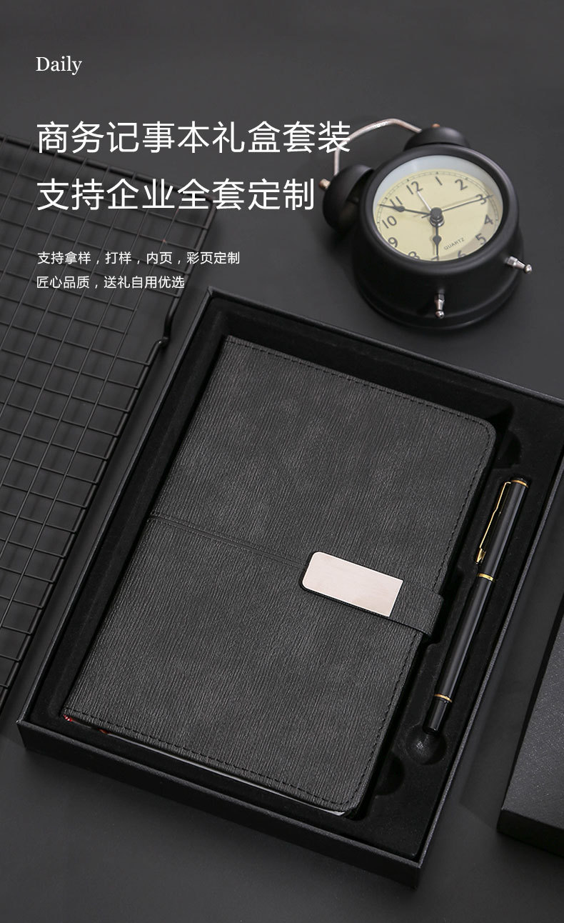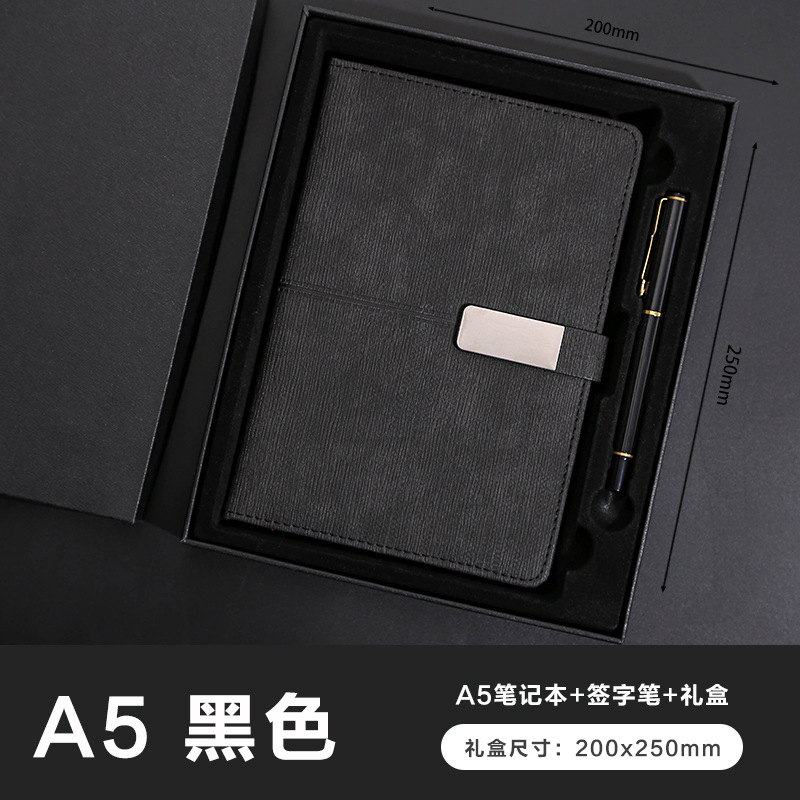 black gift box + gift bag + pen + notebook + refill