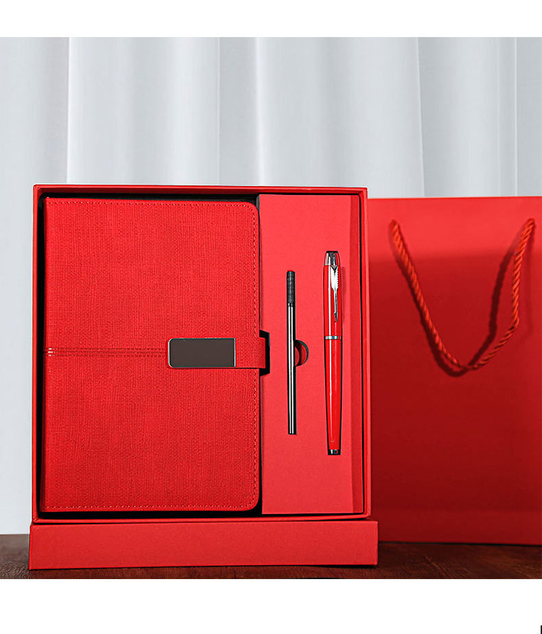red gift box + gift bag + pen + notebook + refill