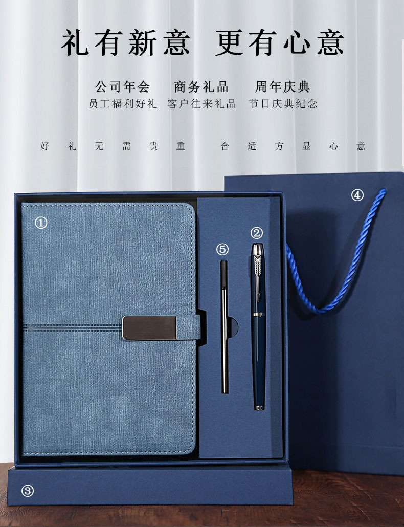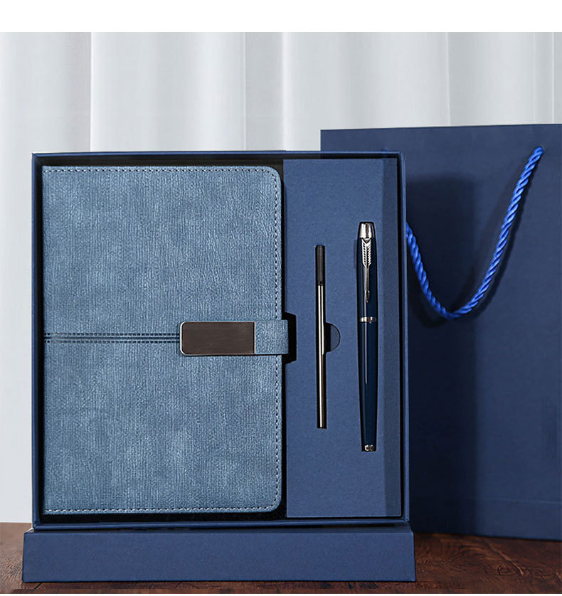 blue gift box + gift bag + pen + notebook + refill