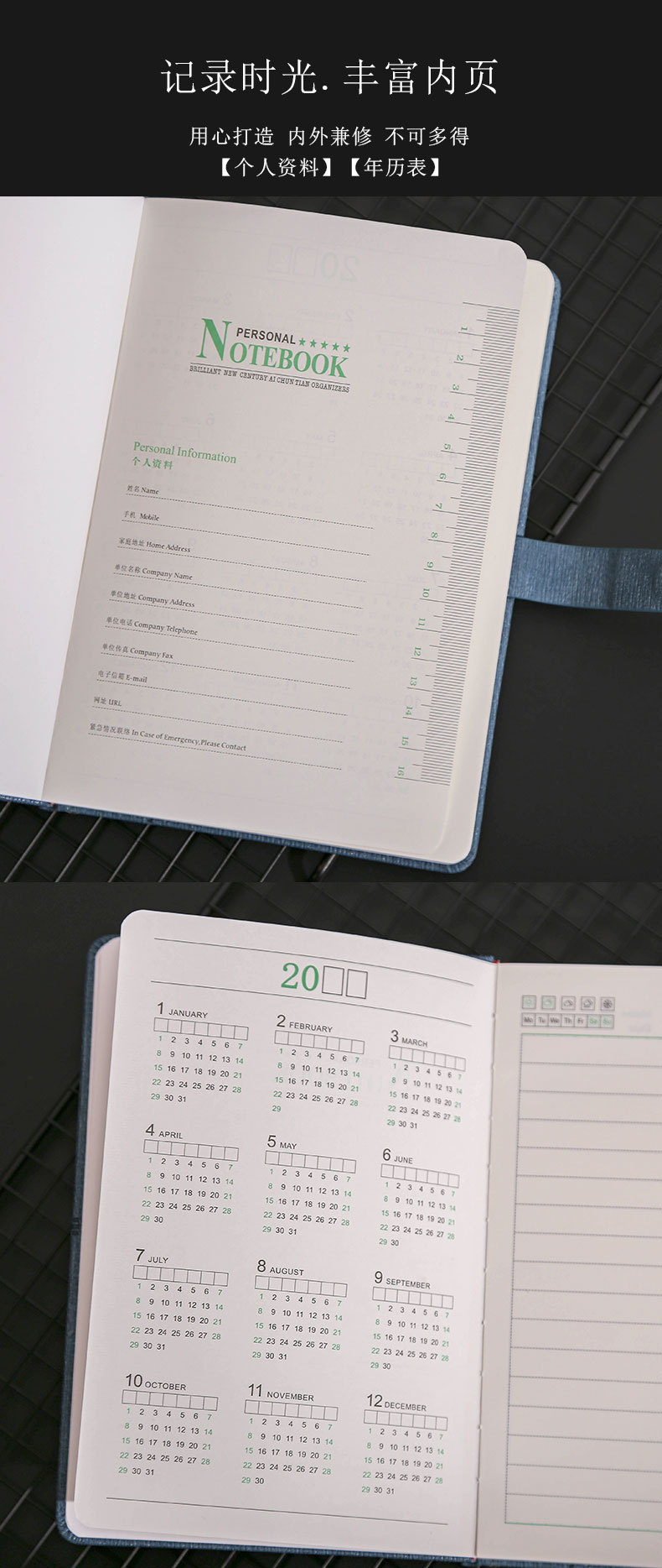 green gift box + gift bag + pen + notebook + refill