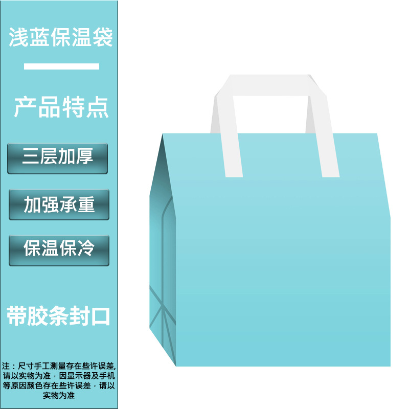 light blue thermal bag 1 piece; 21cm wide and 26cm high side 11cm [small size]; non-woven fabric