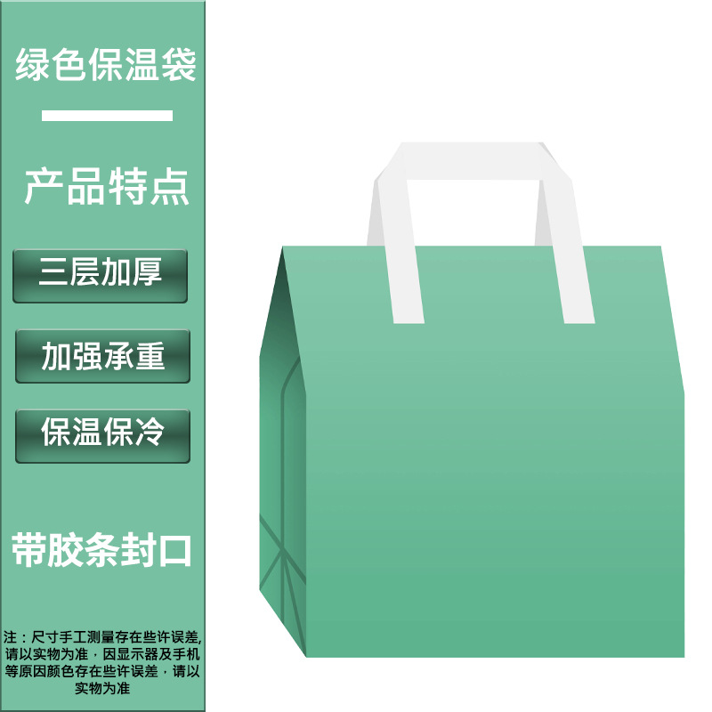 green thermal bag 1 piece; width 21cm height 26cm side 11cm [small size]; non-woven fabric