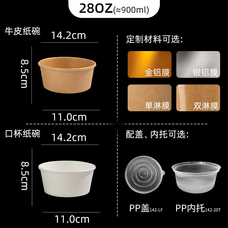 28 oz (about 900ml); kraft round paper bowl-single pe coated film (without cover)-freight consulting customer service