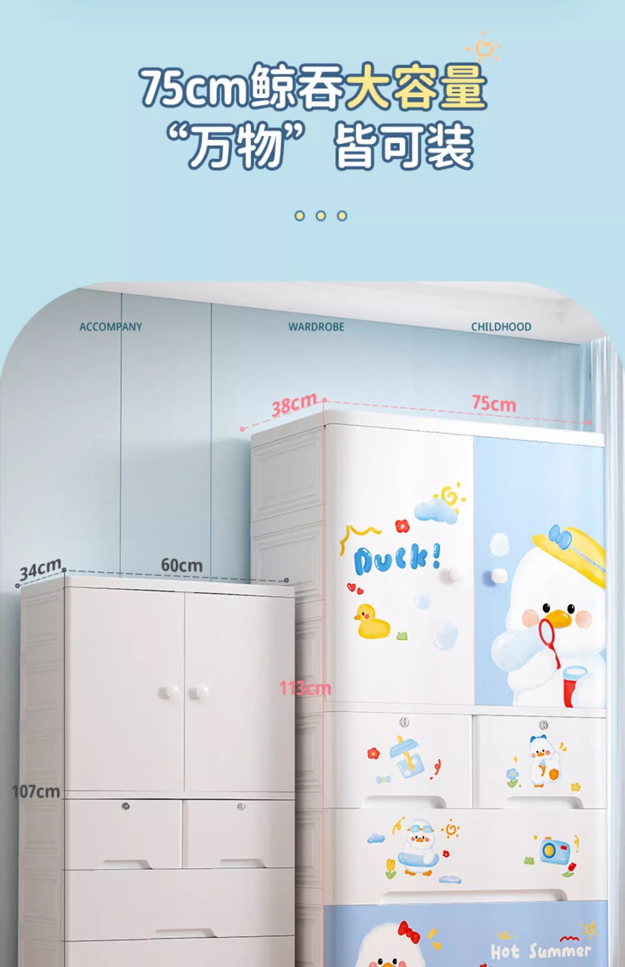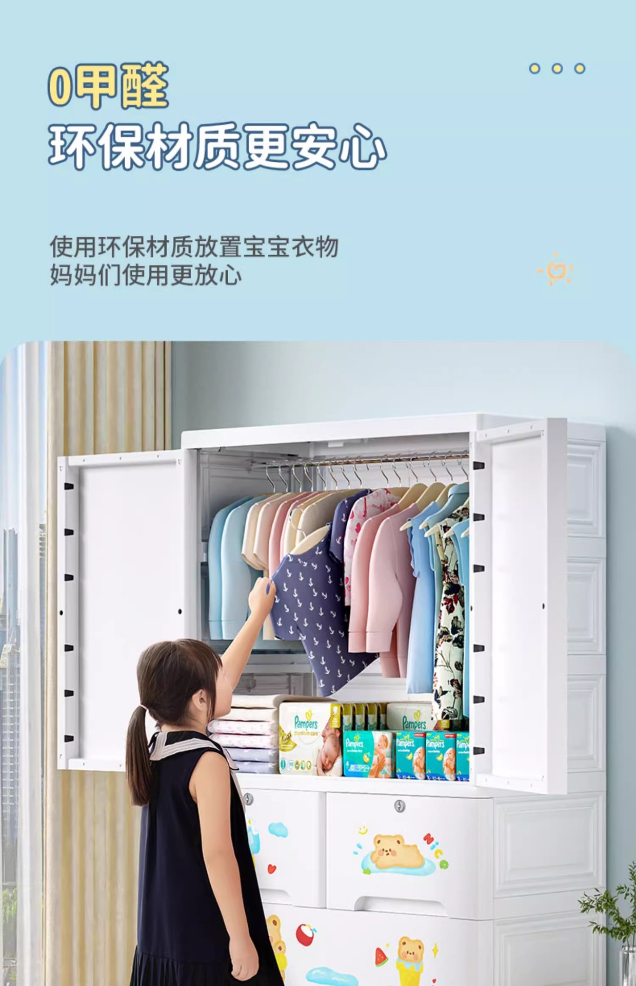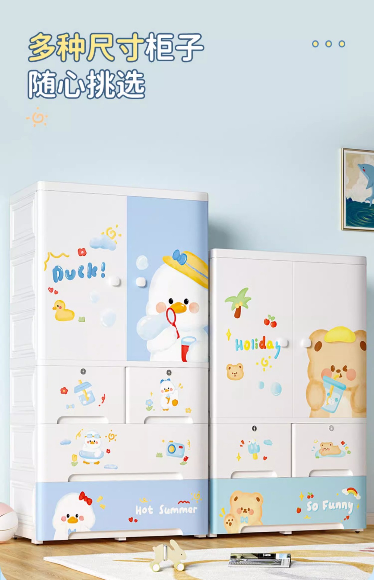 mike baby 75cm cartoon multifunctional children multi-layer locker hanger clothes storage cabinet large capacity