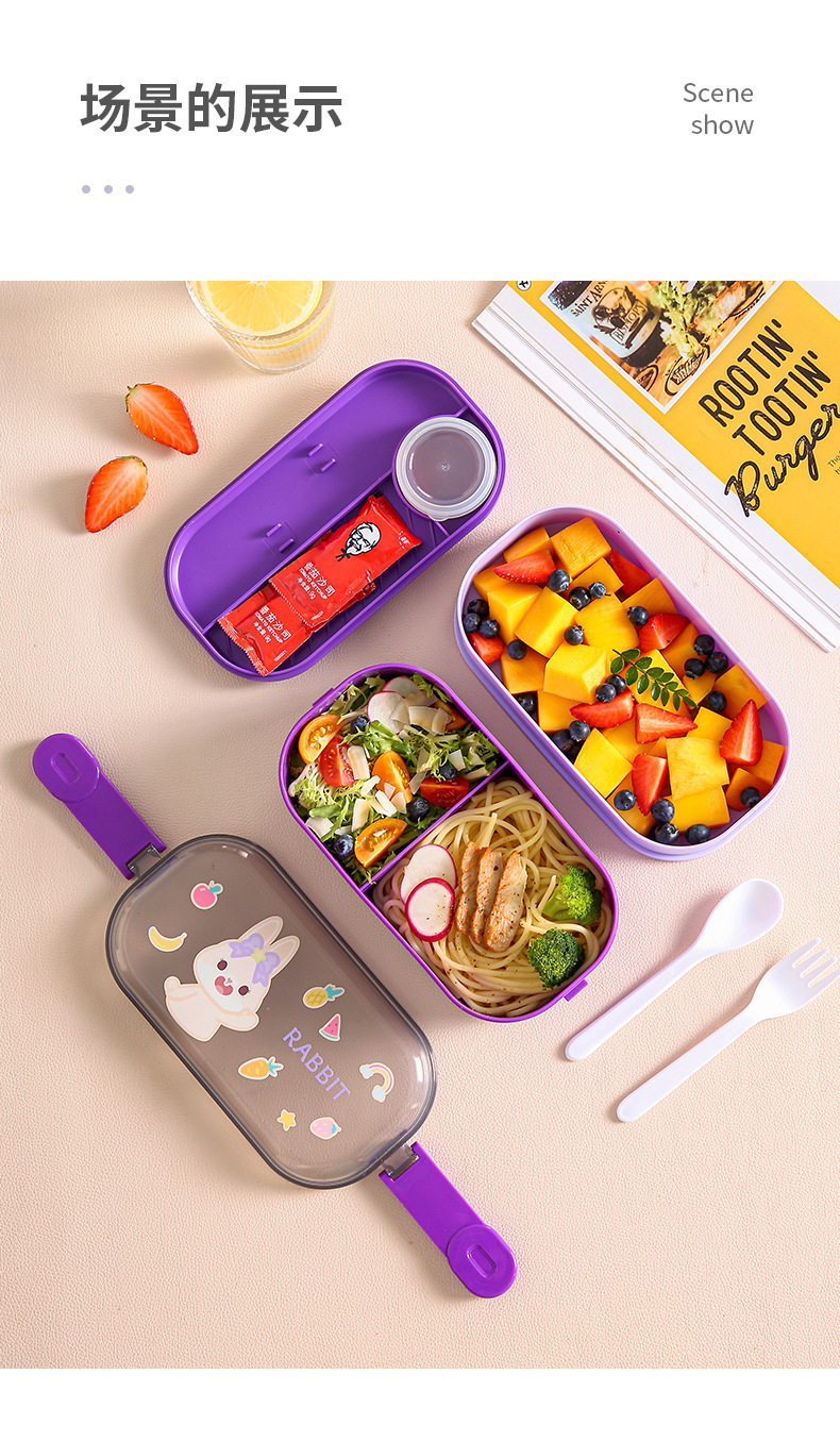 cute elementary school student plastic lunch box cup suit with rice lunch box new cartoon compartment lunch box with tableware