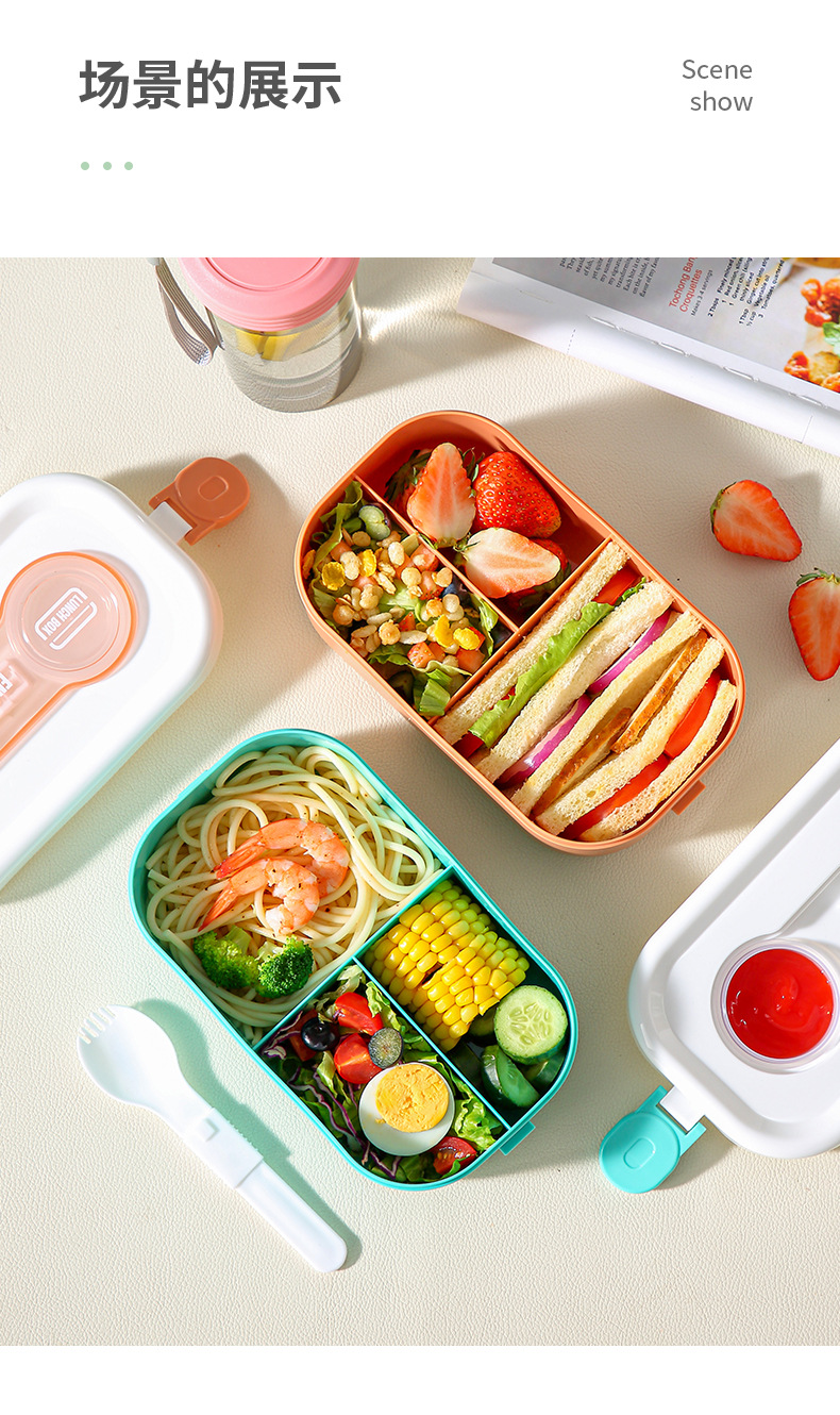 good-looking japanese-style student lunch box microwave oven can be used for girls to bring rice lunch box sealed lunch box with tableware