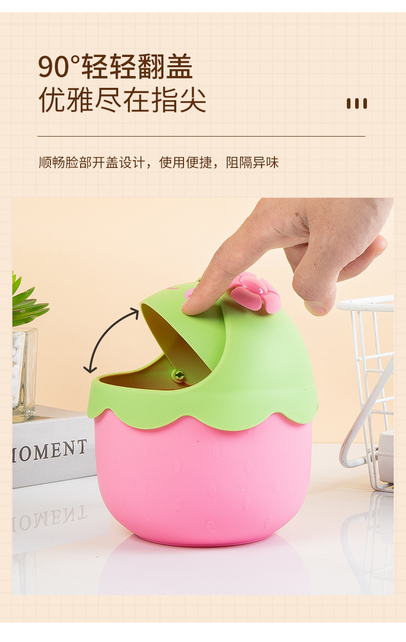 new desktop trash bin cute strawberry flip sundries storage container cute cute cartoon bedroom bedside small storage bucket