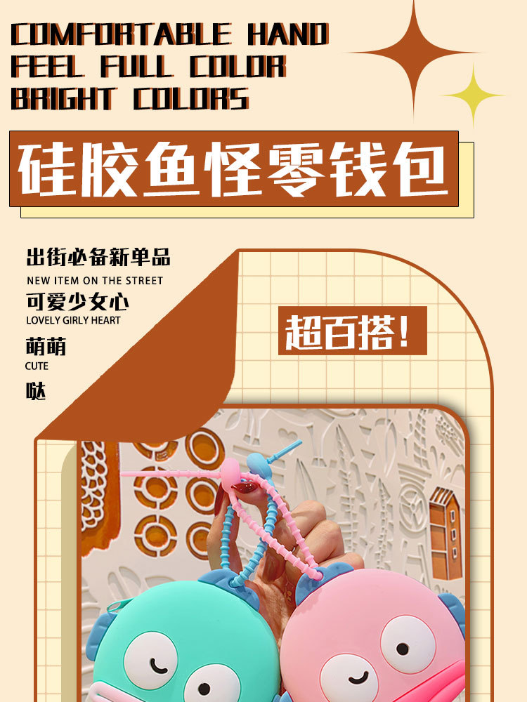 silicone fish monster coin purse-pink