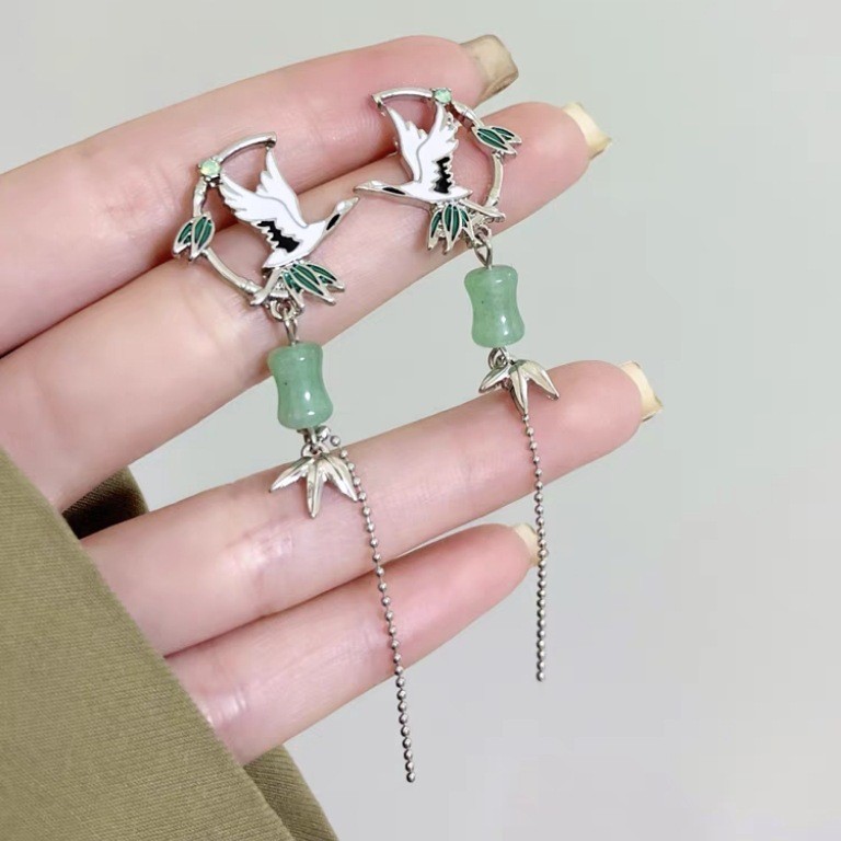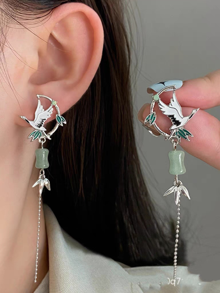 k8028 crane tassel earrings