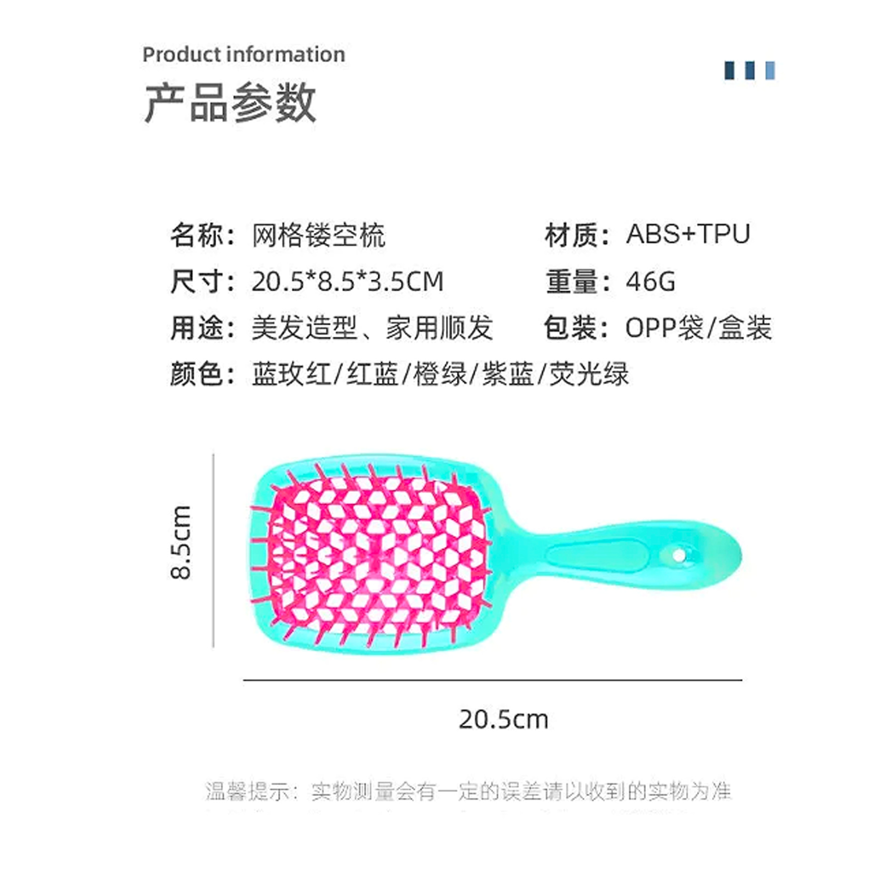 square hollow comb hot sale grid comb color stitching massage comb fluffy shape tangle teezer internet celebrity comb