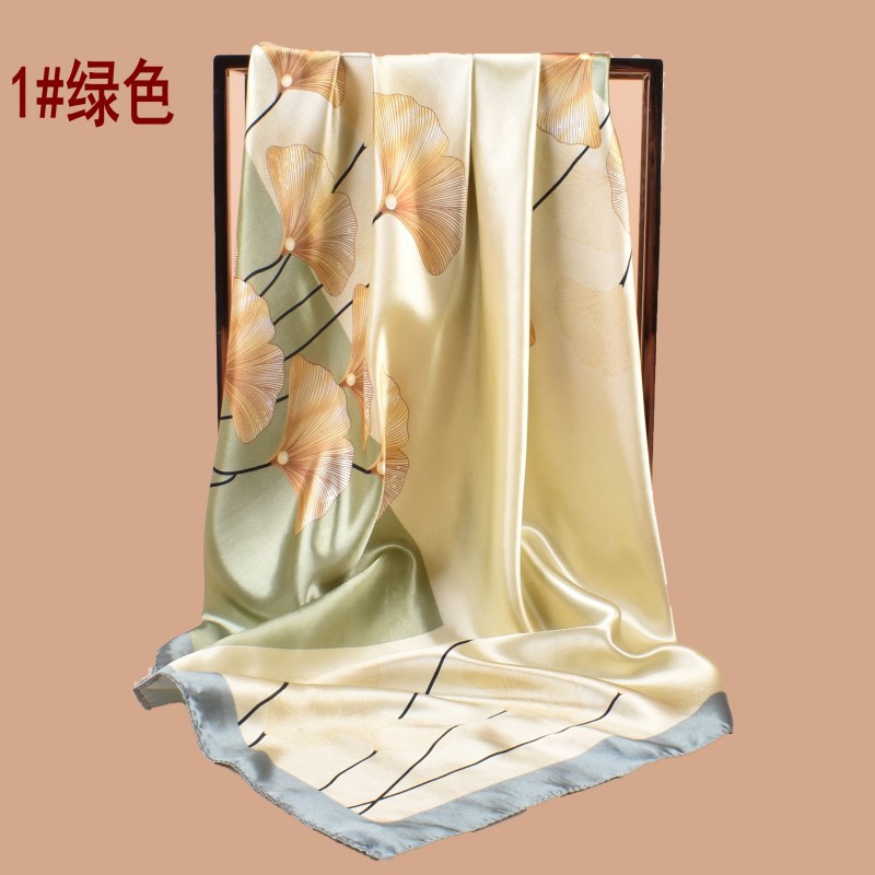 2024 new 90 satin ginkgo leaf printed square scarf outer wear sun protection closed toe silk scarf decoration scarf wholesale
