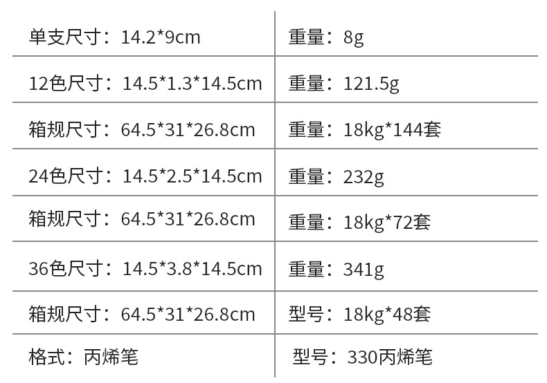 Specification12-color set, 24-color set, 36-color set, 48-color set |