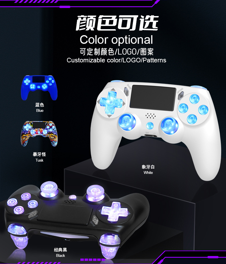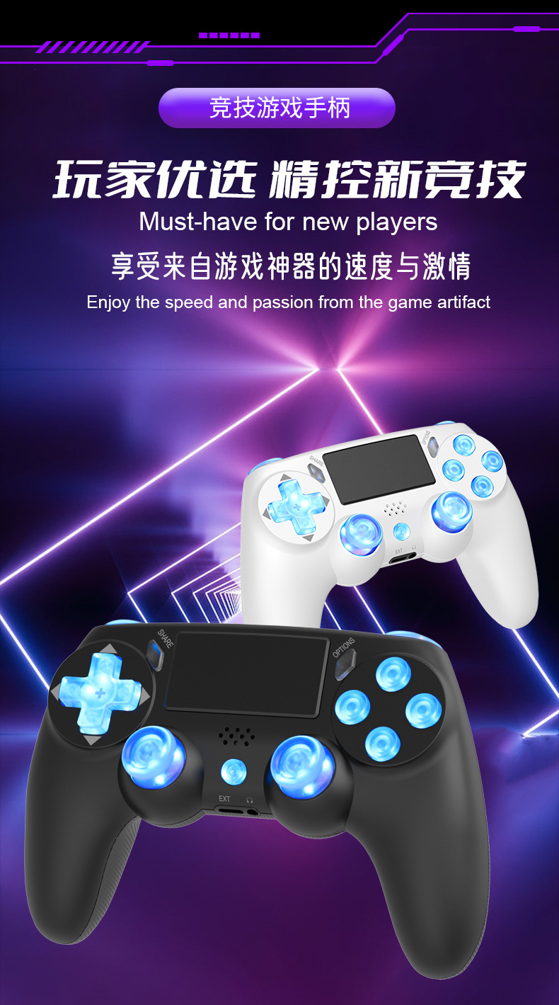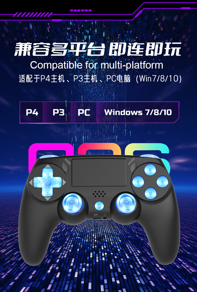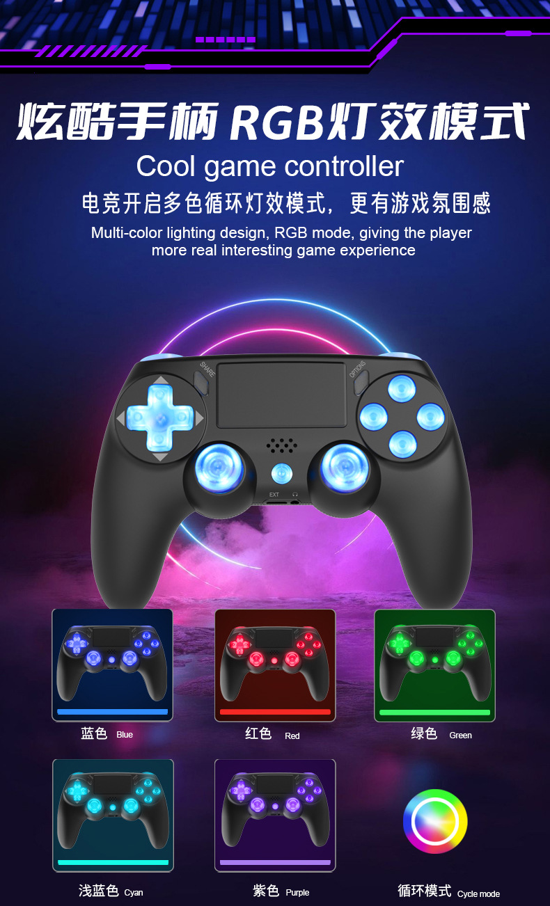 ps4 gamepad compatible with pc computer version six-axis vibration body sense rgb lamp button bluetooth wireless game handle