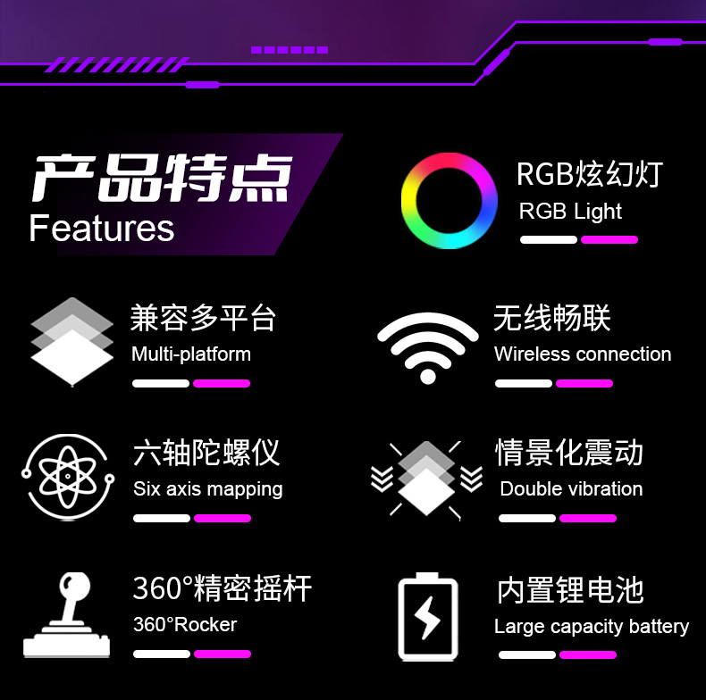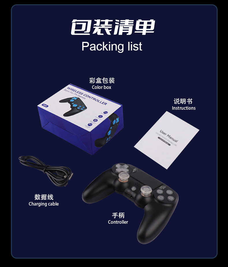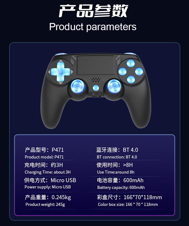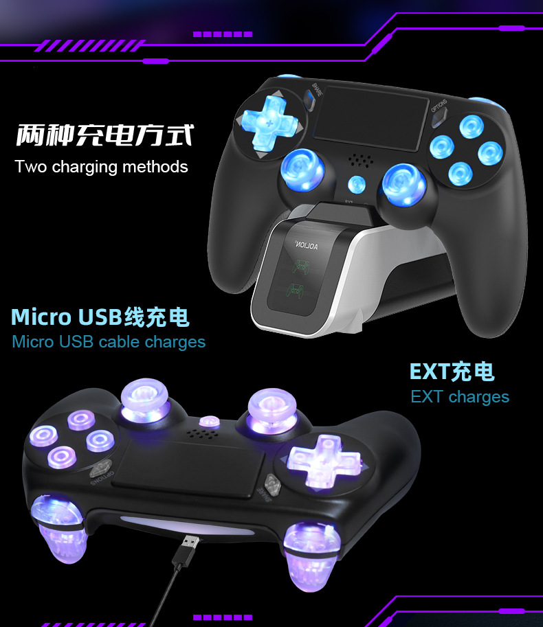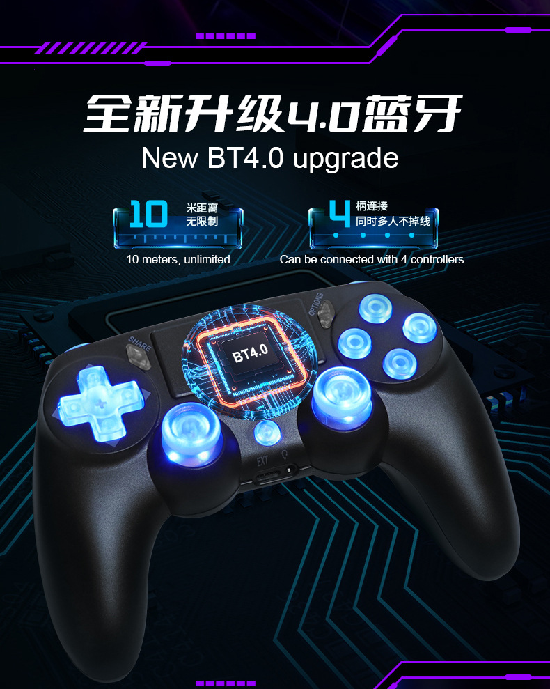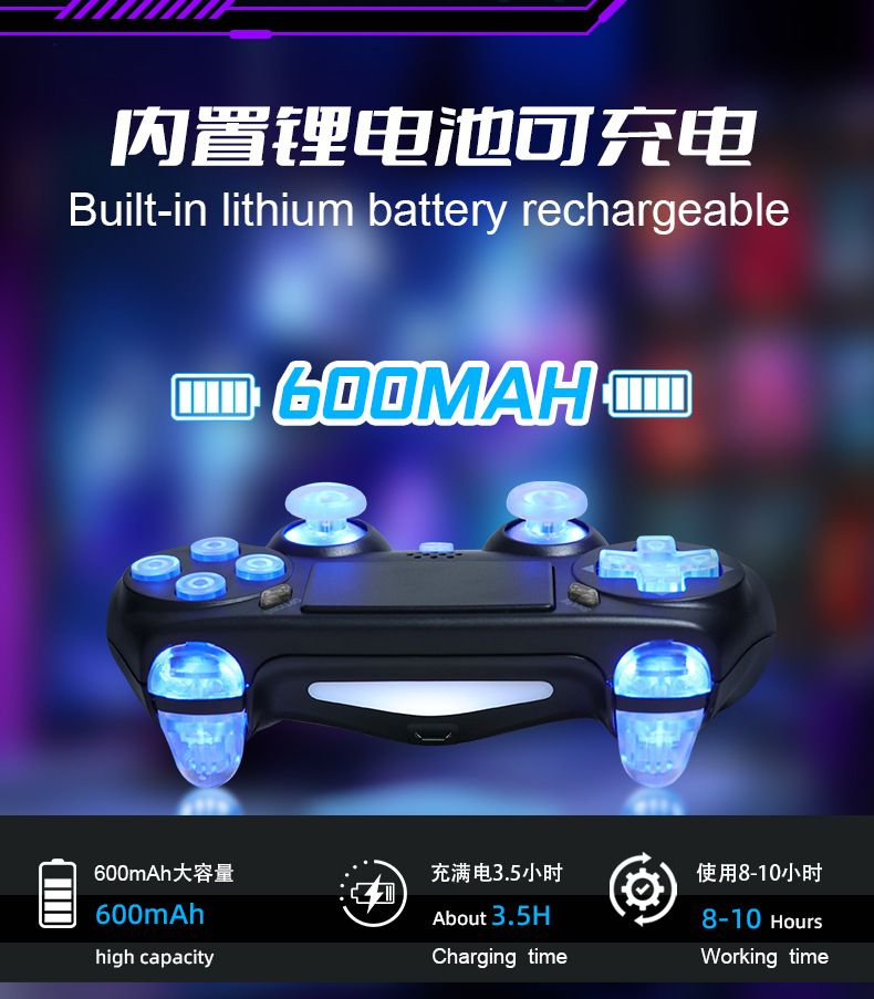 ps4 gamepad compatible with pc computer version six-axis vibration body sense rgb lamp button bluetooth wireless game handle