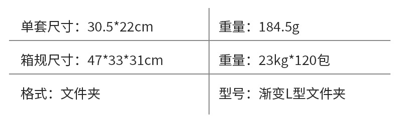 Article Number" 或 "Stock NumberGradual changeL-shaped folder |