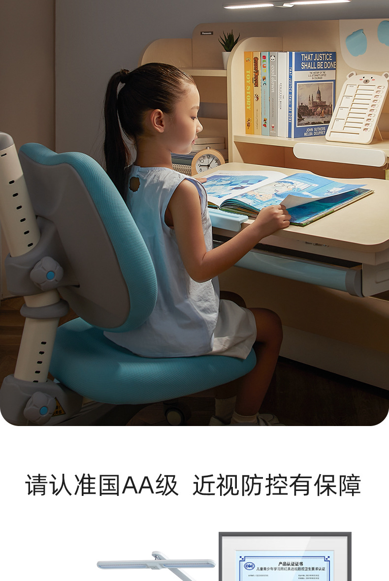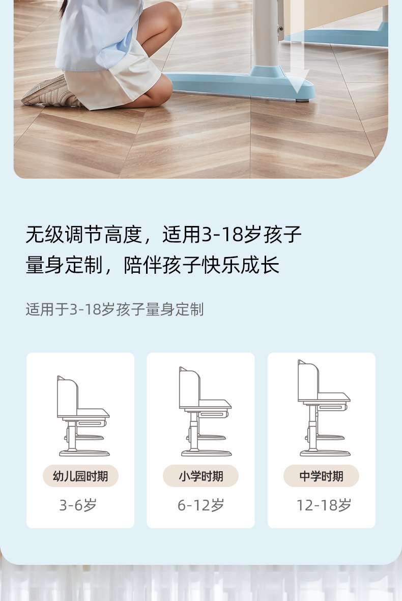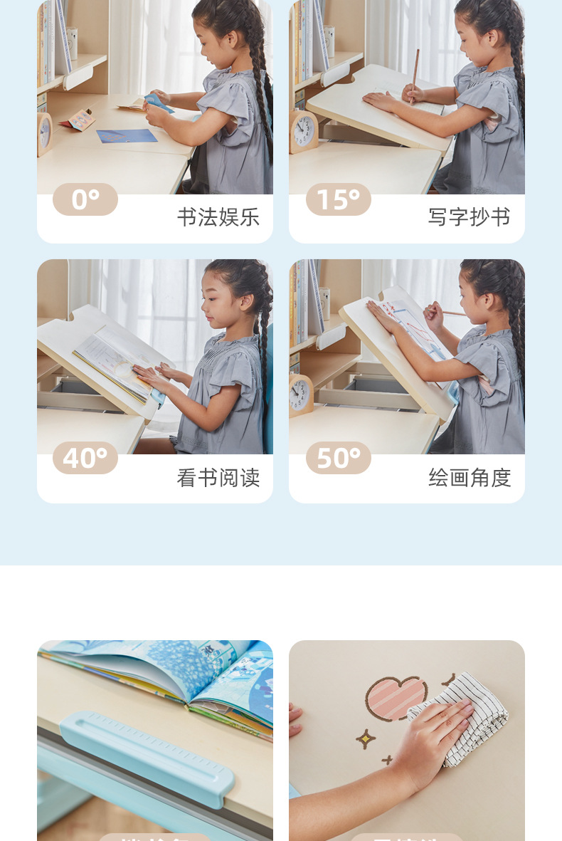 manual lifting table (sky blue) + spine protection double back chair