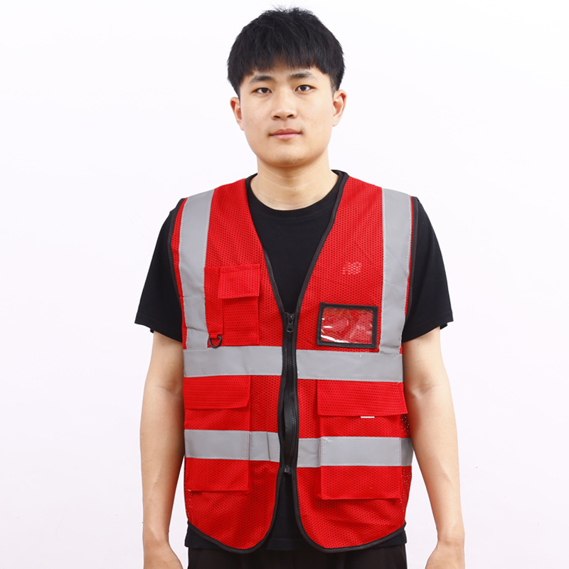 factory multi-pocket reflective vest sanitation workers traffic safety reflective vest printable advertising vest warp knitting cloth