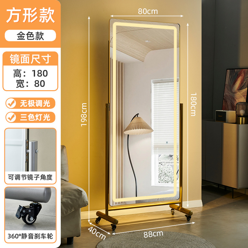 160*60 rectangular golden with wheels 3-color light electrodeless dimming normal | slimming can be adjusted at will