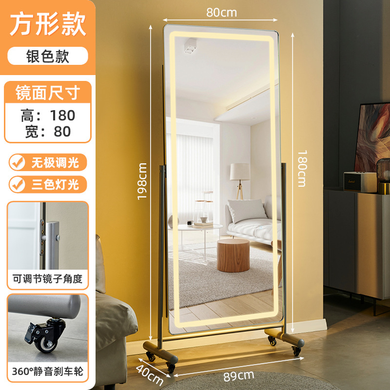 170*70 rectangular silver 3-color light with wheels electrodeless dimming normal | slimming can be adjusted freely