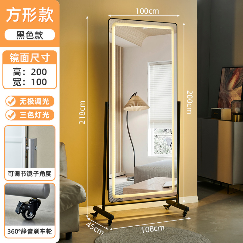 200*100 rectangular black with wheels 3-color light electrodeless dimming normal | slimming can be adjusted at will
