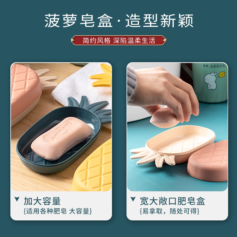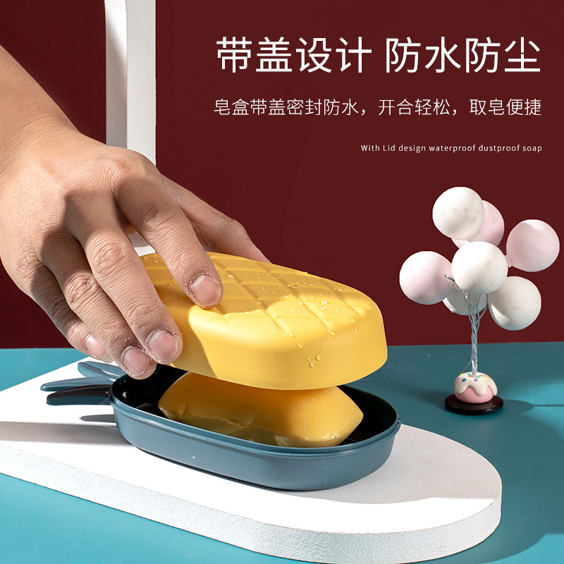 Household plastic drain multi-functional simple cover soap box no water accumulation portable children cartoon cute creative pineapple soap box wholesale personality