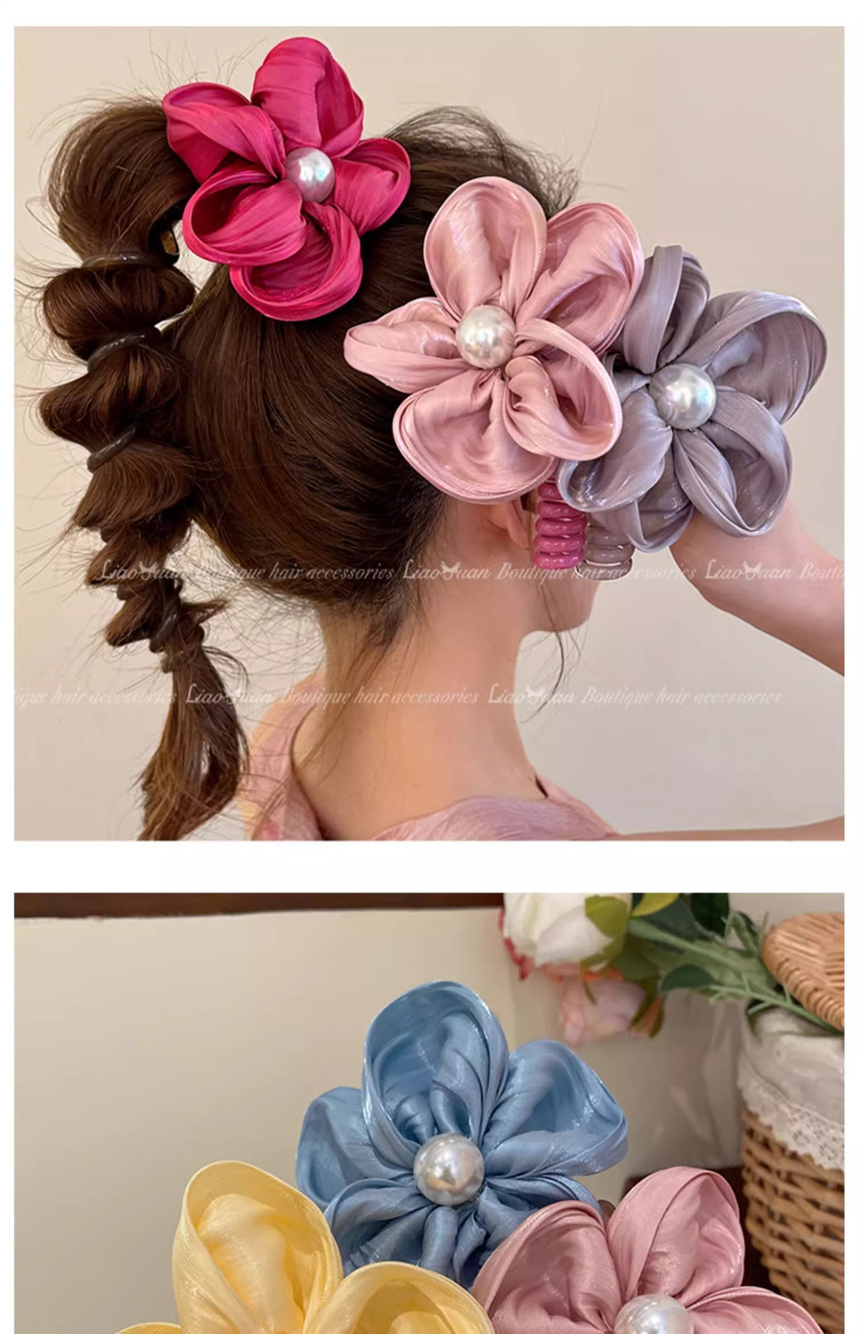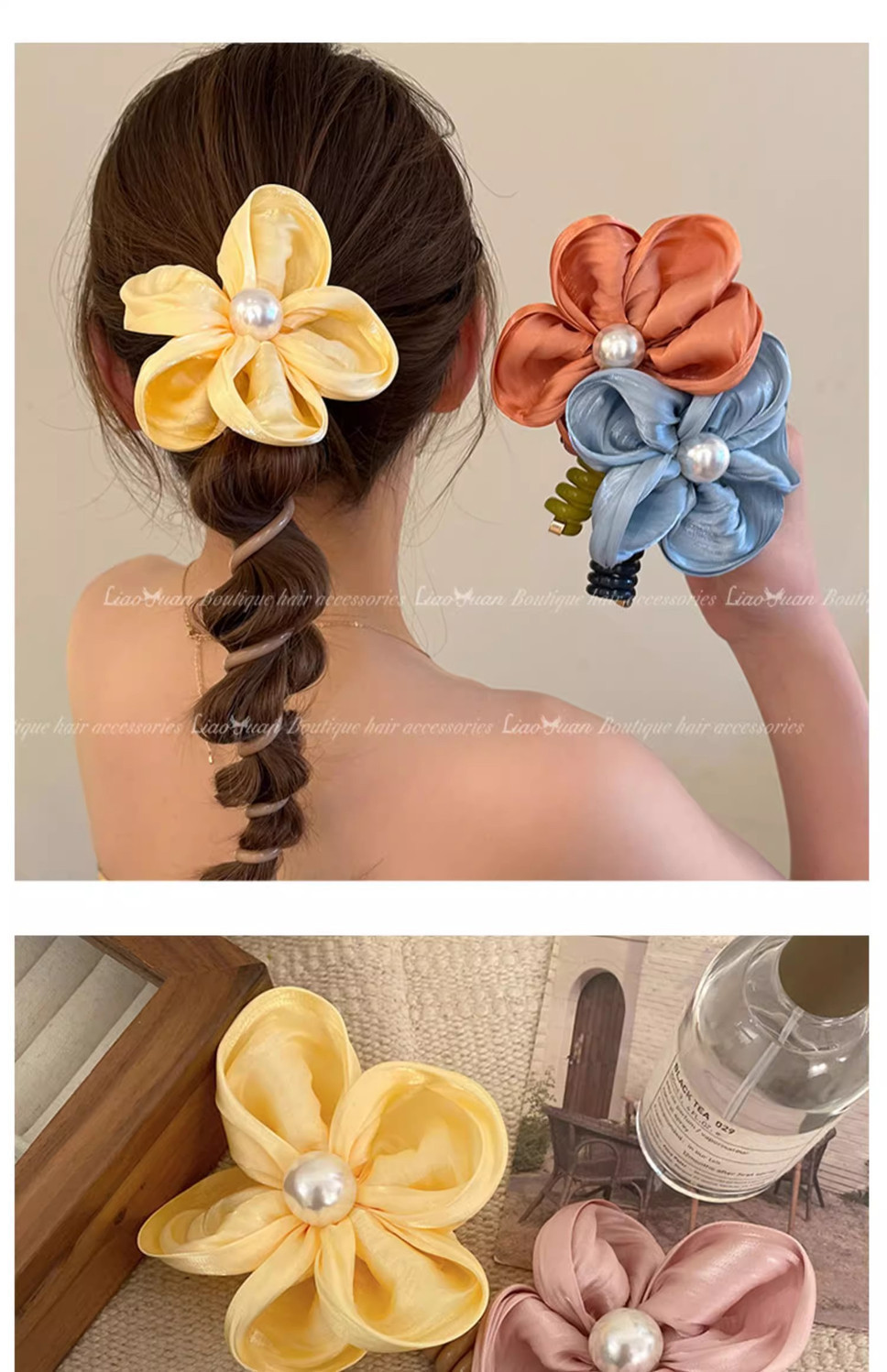 large flower phone line hair ring-orange