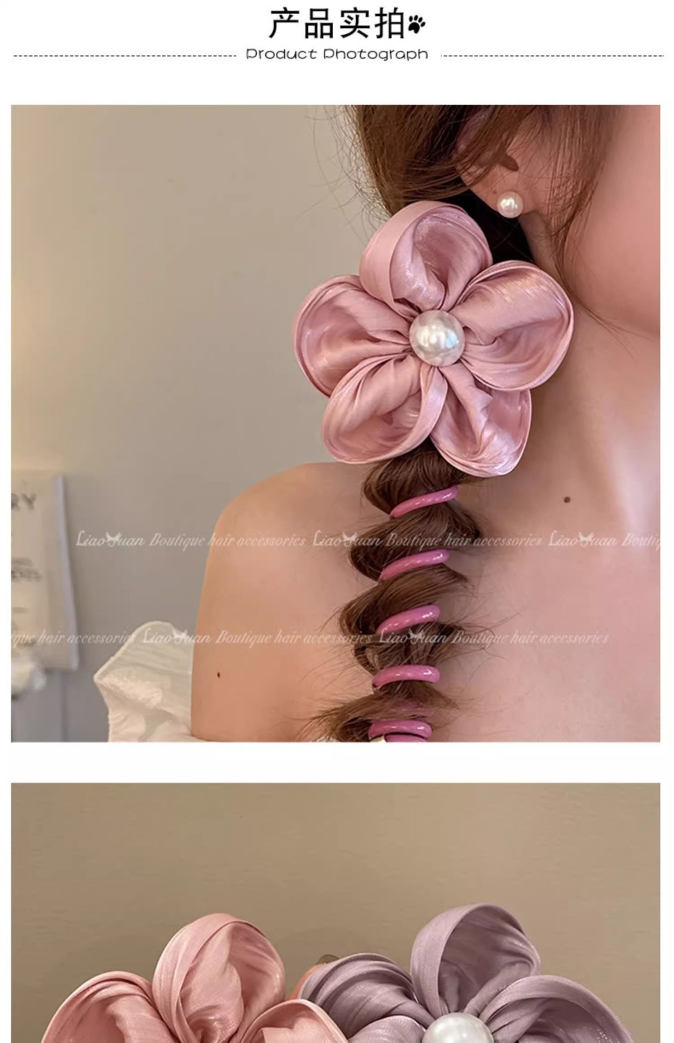 large flower phone line hair ring-light purple