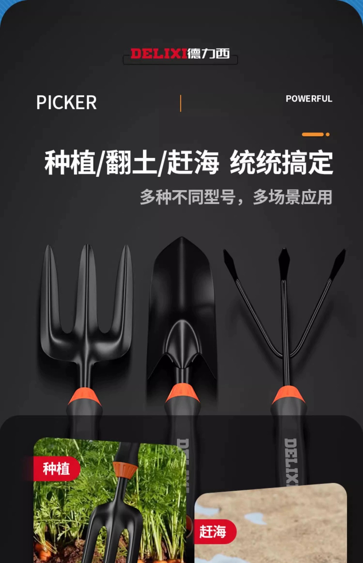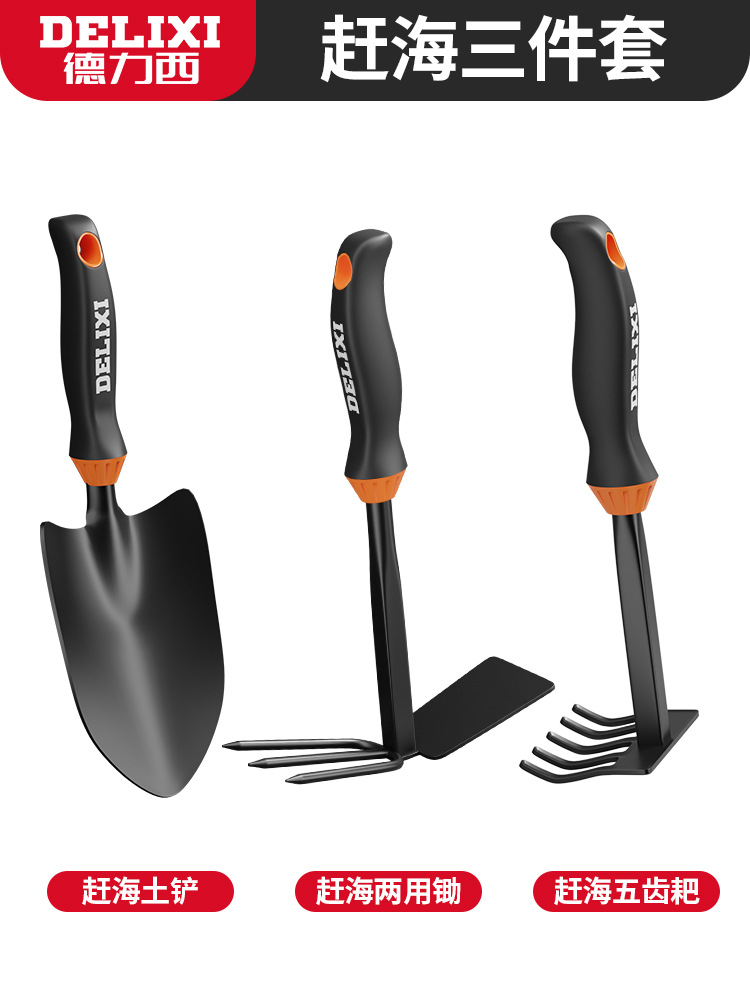 delixi gardening three-piece set (soil shovel + hole shovel + dual-purpose hoe)