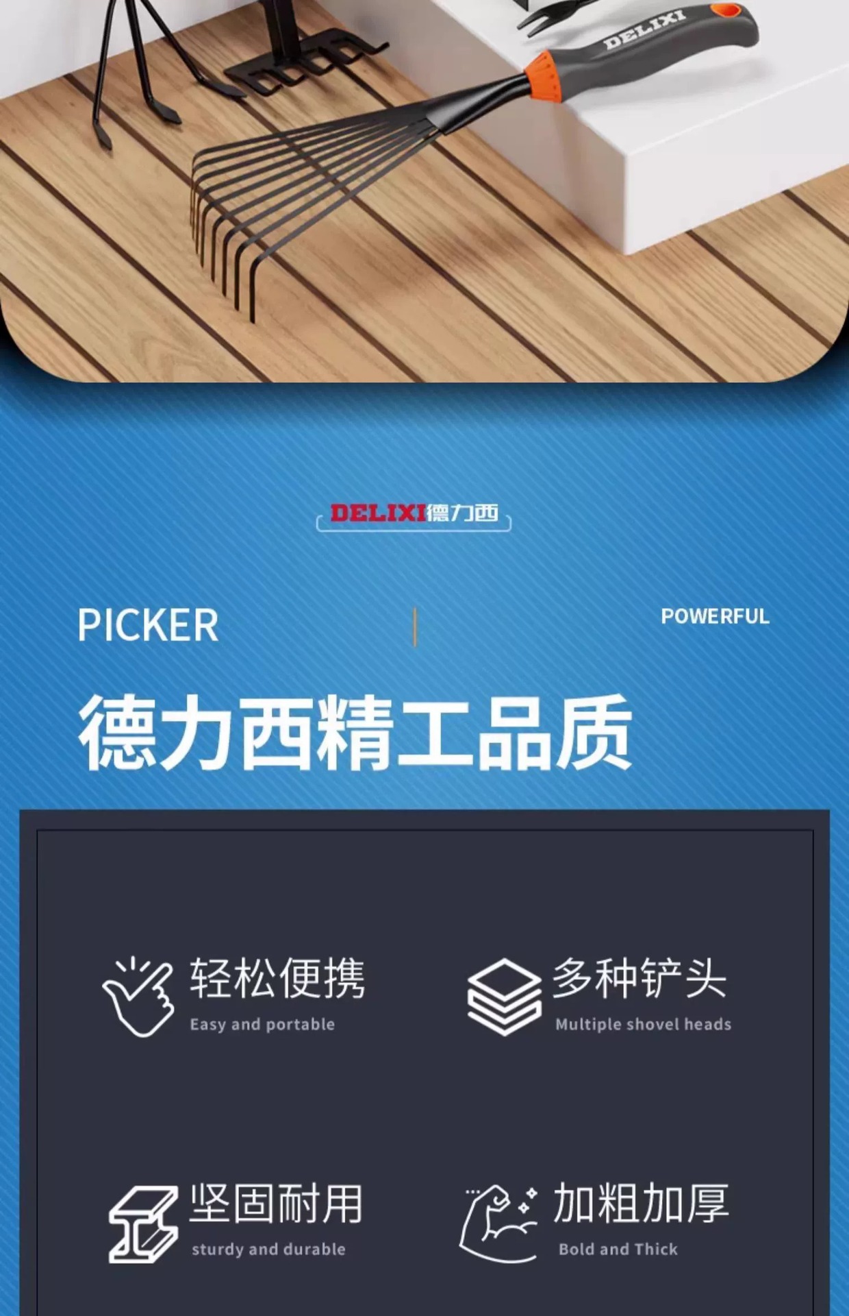 delixi gardening three-piece set (soil shovel + hole shovel + five tooth rake)